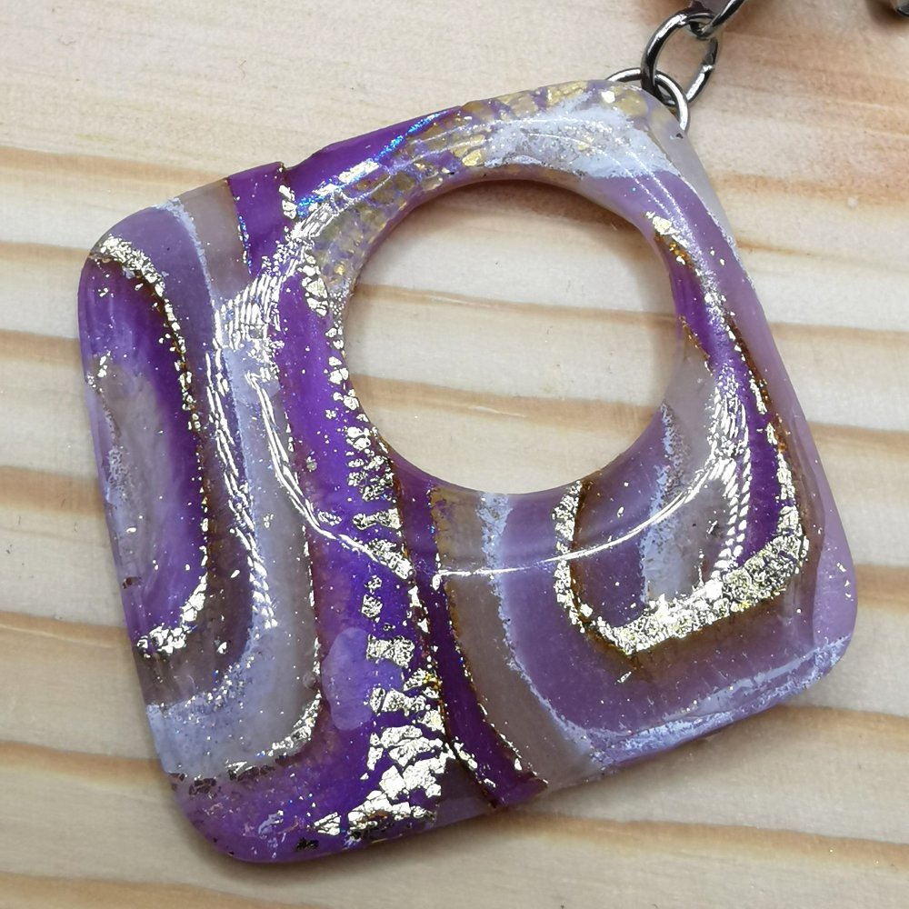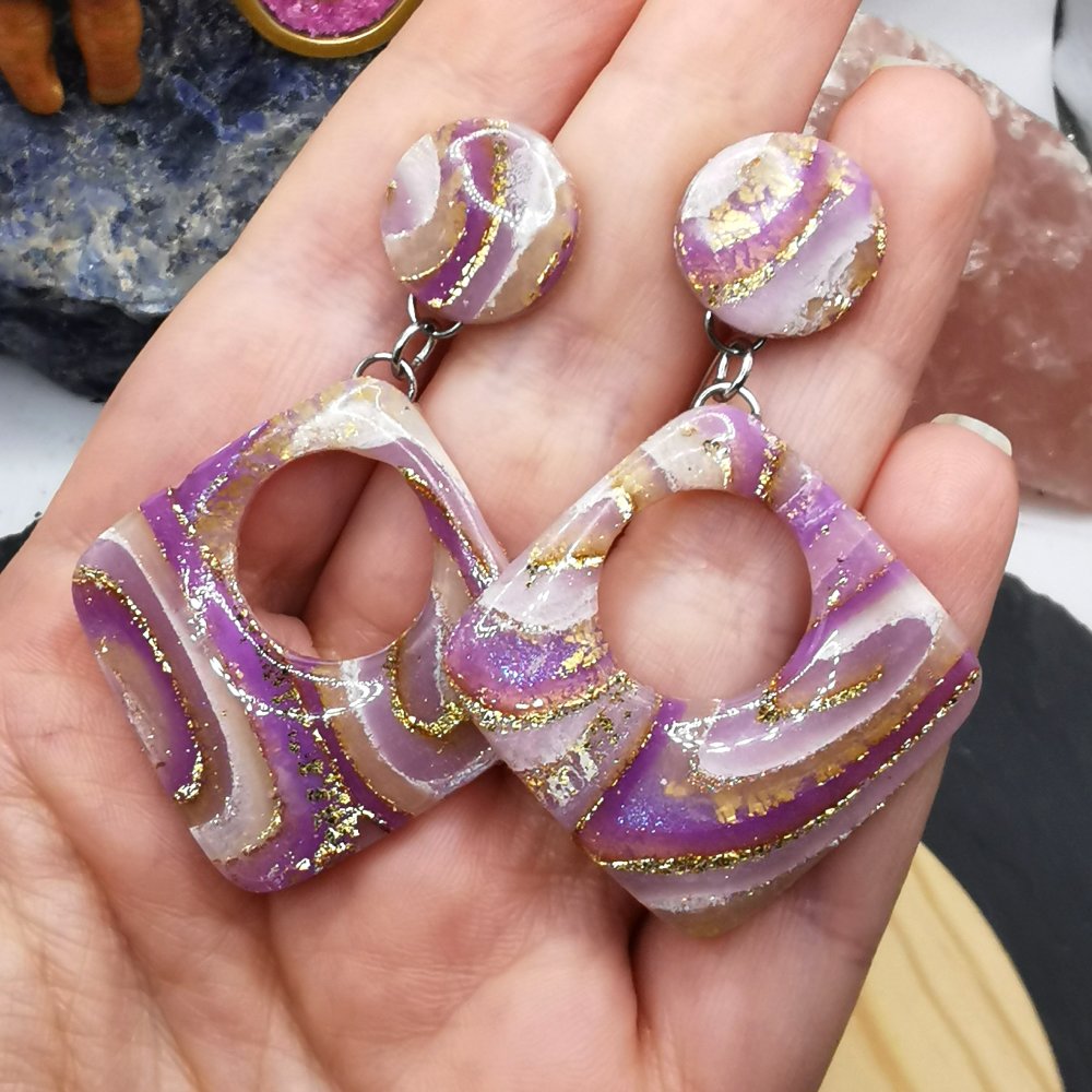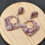 - Boucles d'oreilles en pâte polymère translucide du translucide au violet, sublimer par une couche de résine.