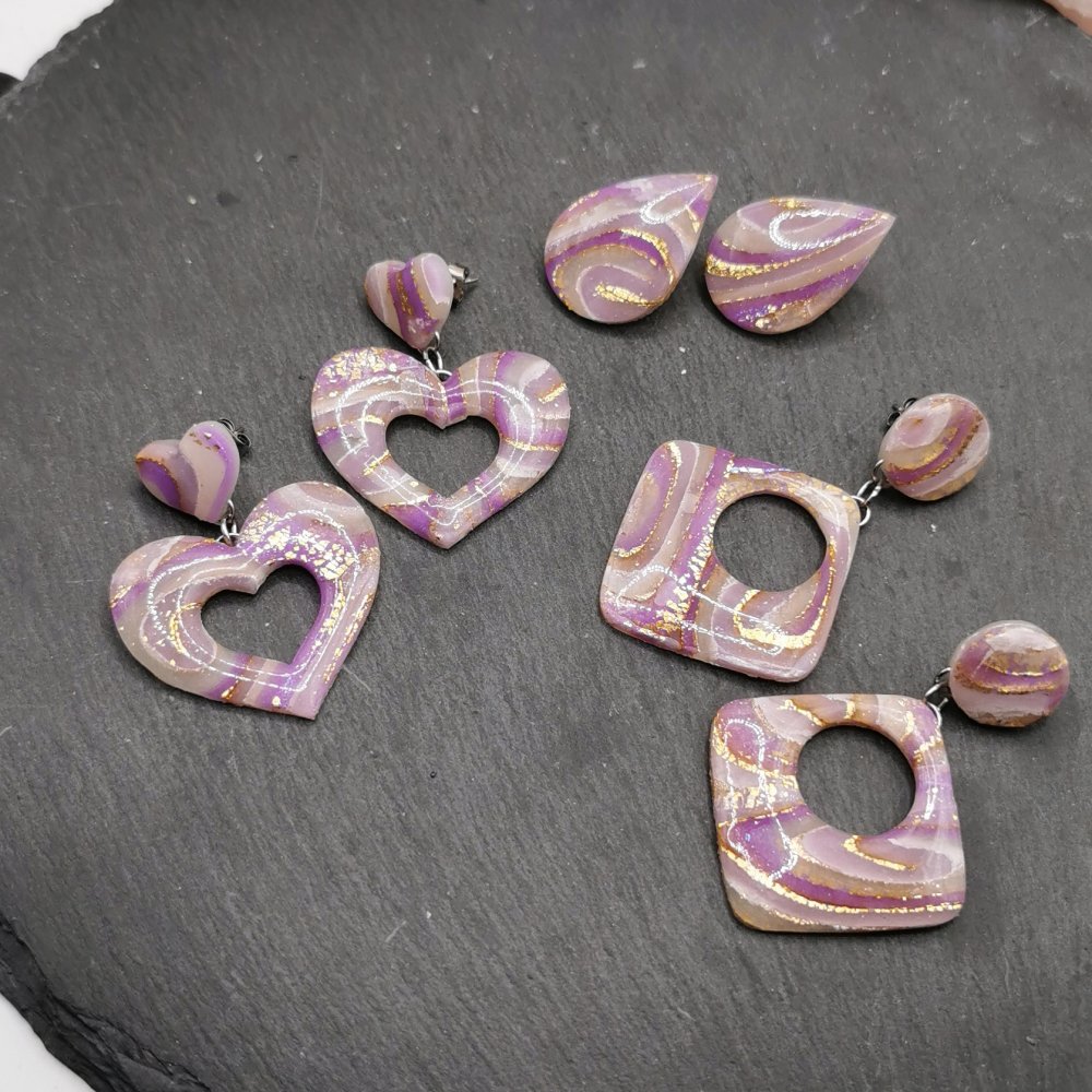 Vous aimez le viilet ? Vous devriez apprécier cette paire de boucles d'oreilles inspiration années 80 / 90!