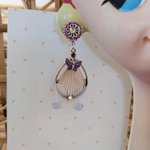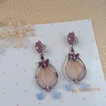Boucles d'oreilles clips en nacre papillons organza et émaillé couleur prune, clips pour femme