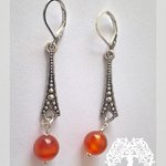 Des boucles d'oreilles de style art déco, ornées de perles en cornaline...