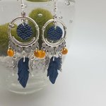 Boucles d'oreilles creapam APACHE en pâte polymère marine et jaune