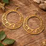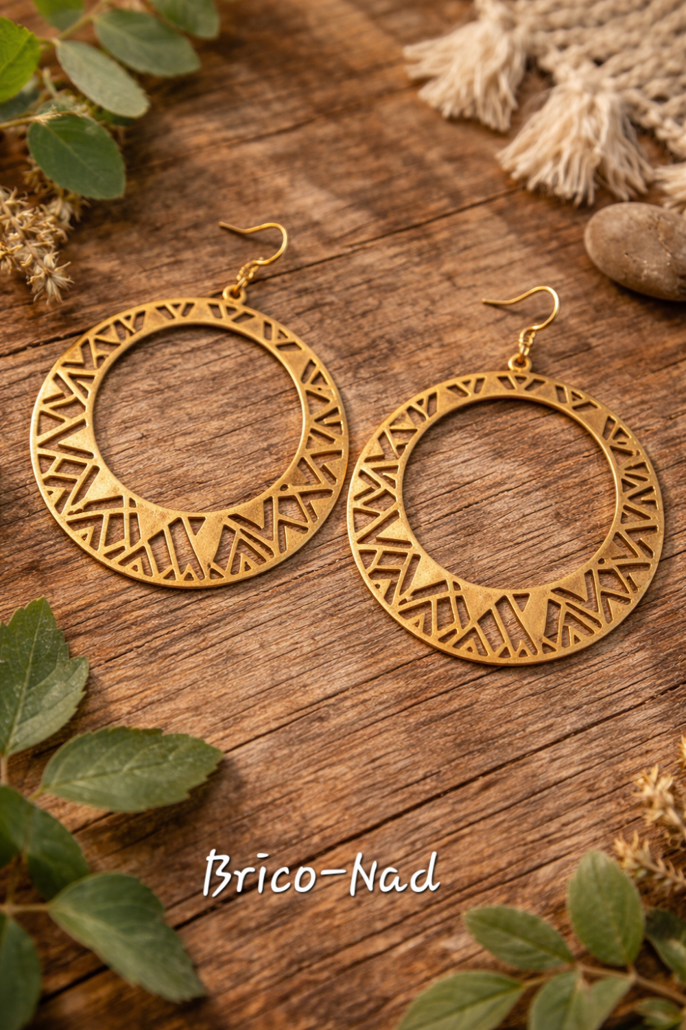 Apportez une touche de caractère et d’élégance à votre style ✨ avec ces grandes boucles d’oreilles créoles dorées de 7 cm de diamètre 💛. Leur design ajouré et leurs motifs géométriques gravés créent de superbes reflets à la lumière 🌟, pour un rendu à la fois moderne et ethnique chic.