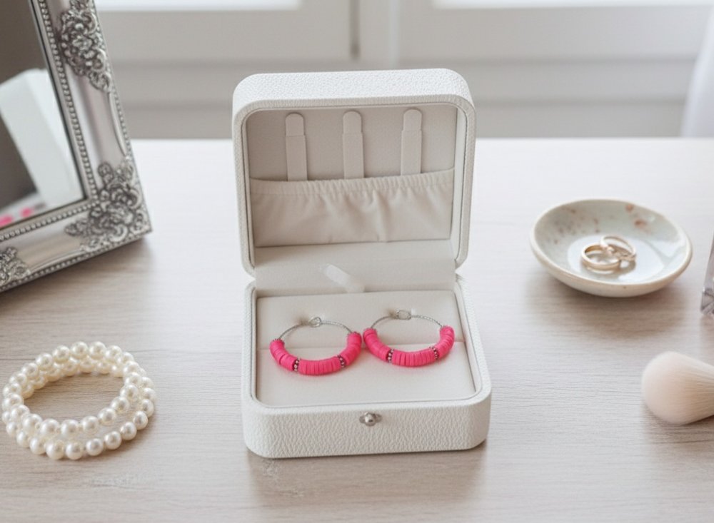 Boucles d'oreilles créoles acier inoxydable et perles Heishi