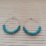Jolie paire de boucles d'oreilles créoles en acier inoxydable de 30 mm de diamètre, perles rondelles acier inoxydable et perles Heishi de couleur vert turquoise