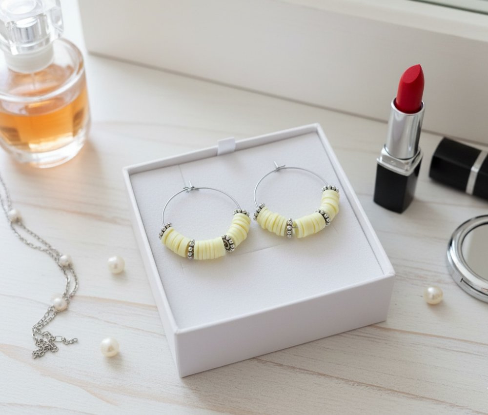 Boucles d'oreilles créoles acier inoxydable et perles Heishi