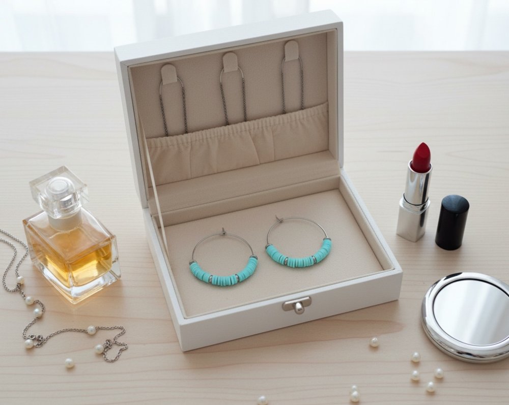Boucles d'oreilles créoles acier inoxydable et perles Heishi