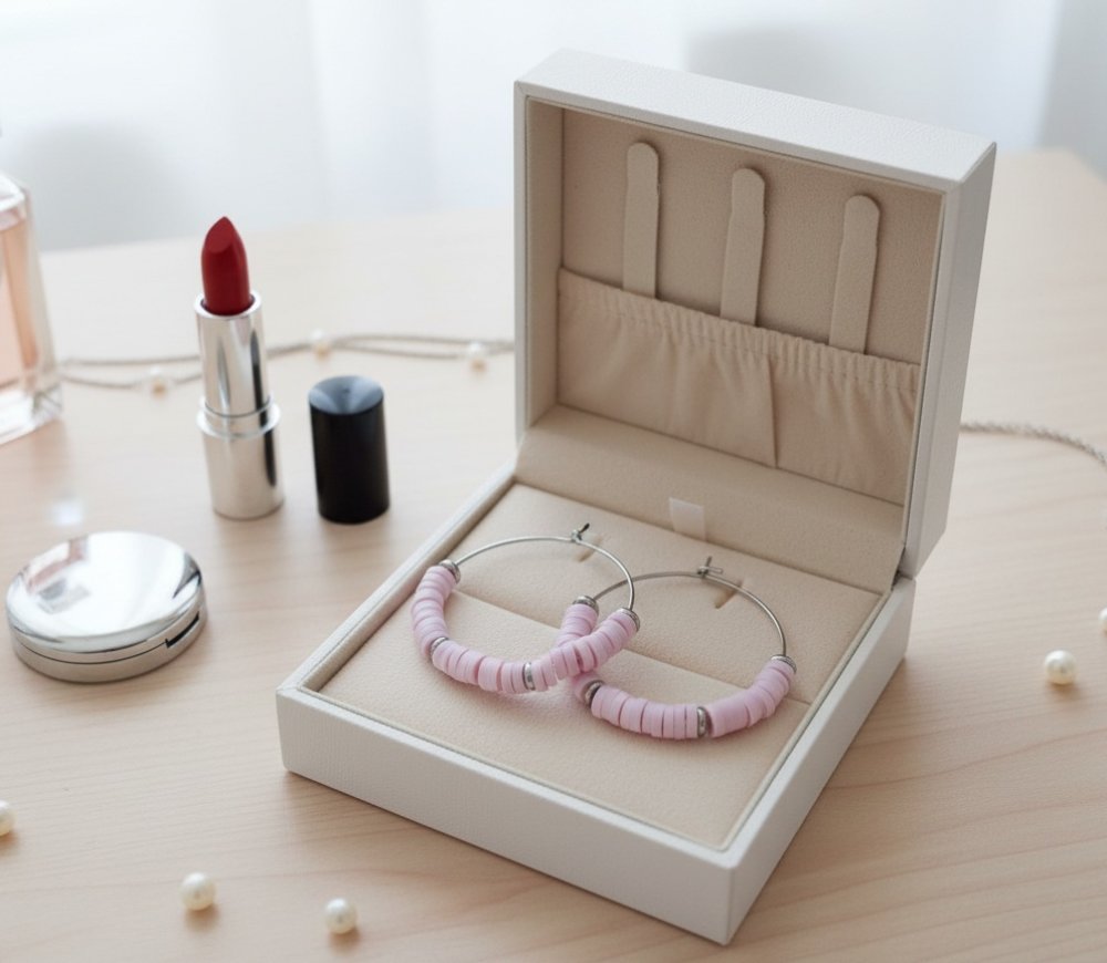 Boucles d'oreilles créoles acier inoxydable et perles Heishi
