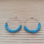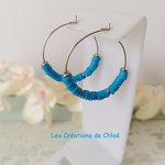 Jolie paire de boucles d'oreilles créoles en acier inoxydable de 30 mm de diamètre, perles rondelles acier inoxydable et perles Heishi de couleur bleue