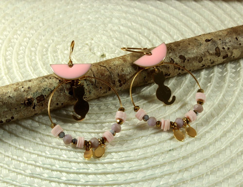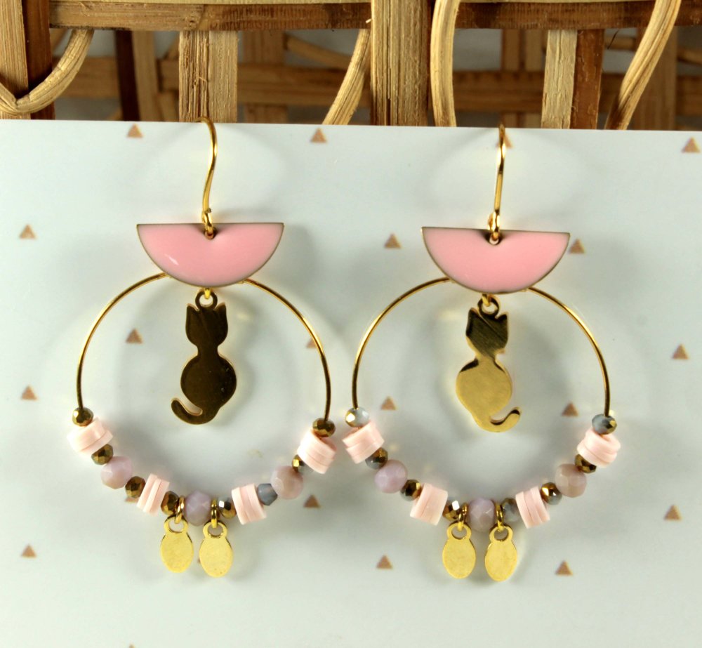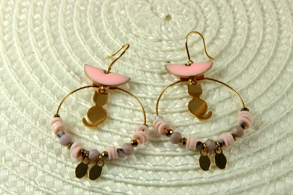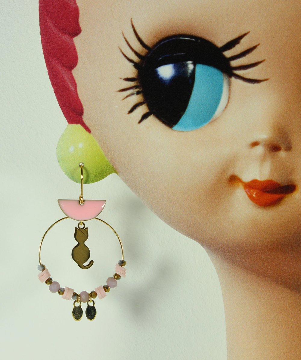✨ Féminines et mignonnes : des créoles chat doré et rose pour illuminer vos looks.