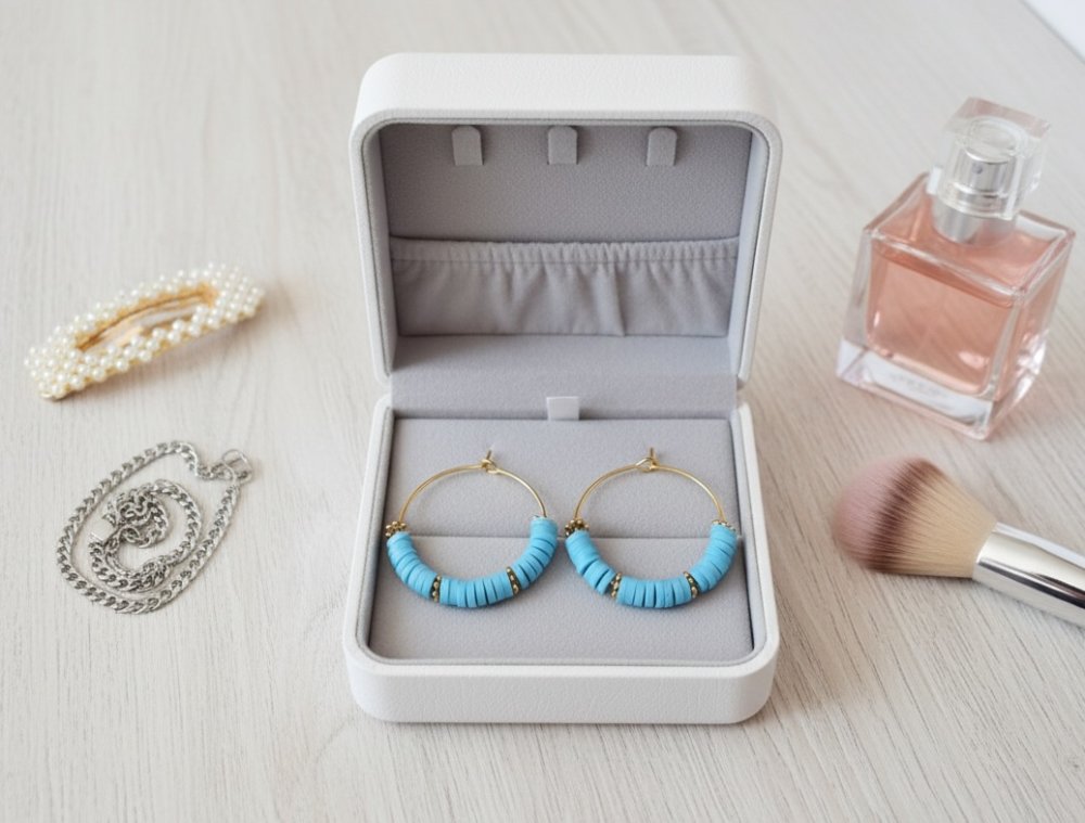 Boucles d'oreilles créoles et perles Heishi