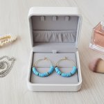 Jolie paire de boucles d'oreilles créoles dorées de 25 mm de diamètre en acier inoxydable avec perles Heishi de couleur bleue