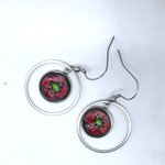 Ces créoles rondes motif coquelicot, très légères, sont fabriquées avec un cabochon en pâte polymère, un anneau et un crochet en acier inoxydable