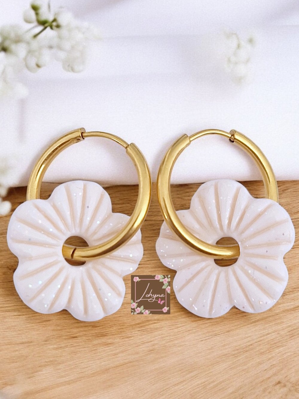 Chaque boucle est ornée d'une jolie pampille fleur de 20mm en pâte polymère.