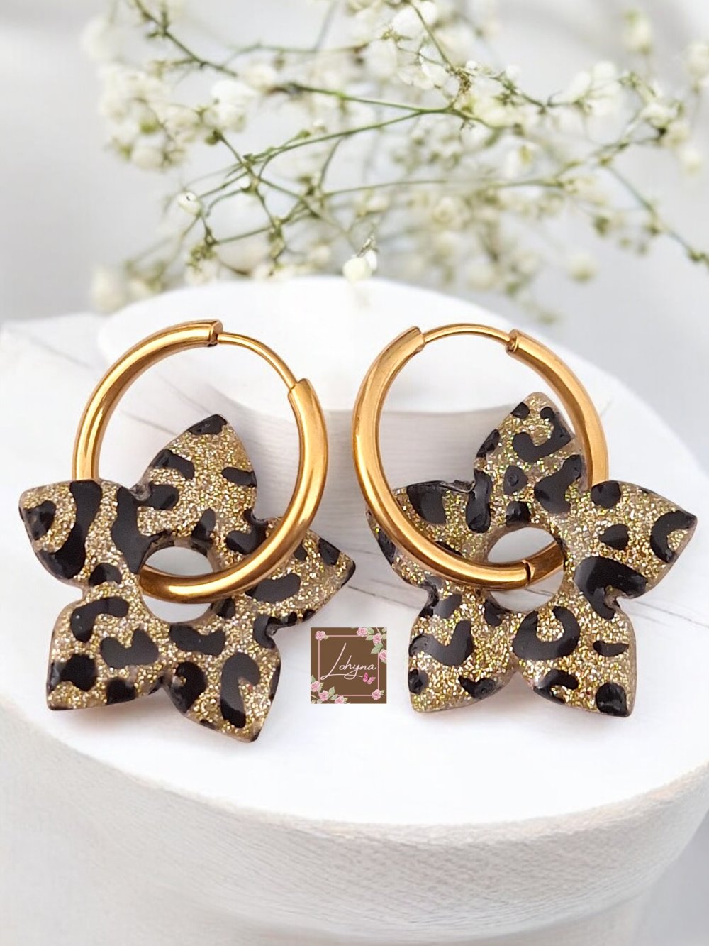 Découvrez ces jolies boucles d'oreilles interchangeables "Savannah" qui marient la tendance du motif léopard à la délicatesse d'une forme florale.