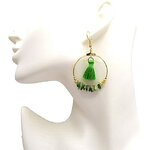 🌿Créoles Boho chic en acier inoxydable, en pierres de serpentine et glands verts.