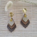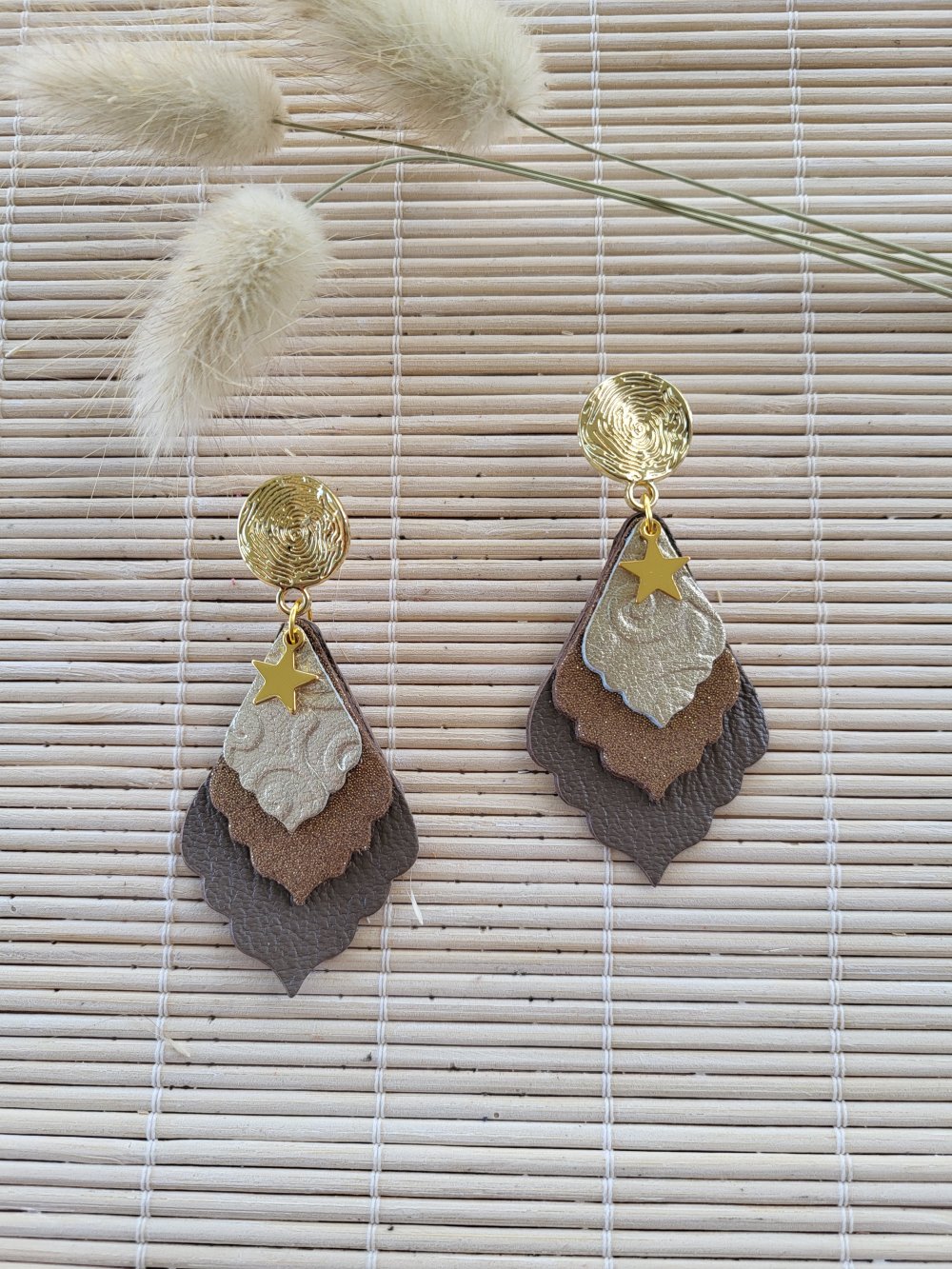 Boucles d'oreilles légères créations artisanales en cuir pailleté ,cuir naturel et liège.