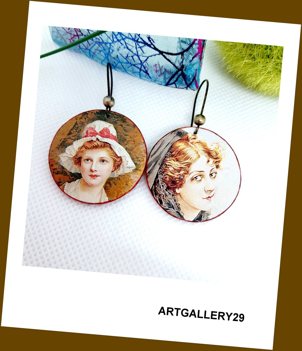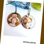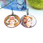 Boucles d'oreilles dépareillées vintage rétro visage d'antan, cadeau artistique bohème chic, boucles d'oreilles fait main pièce unique