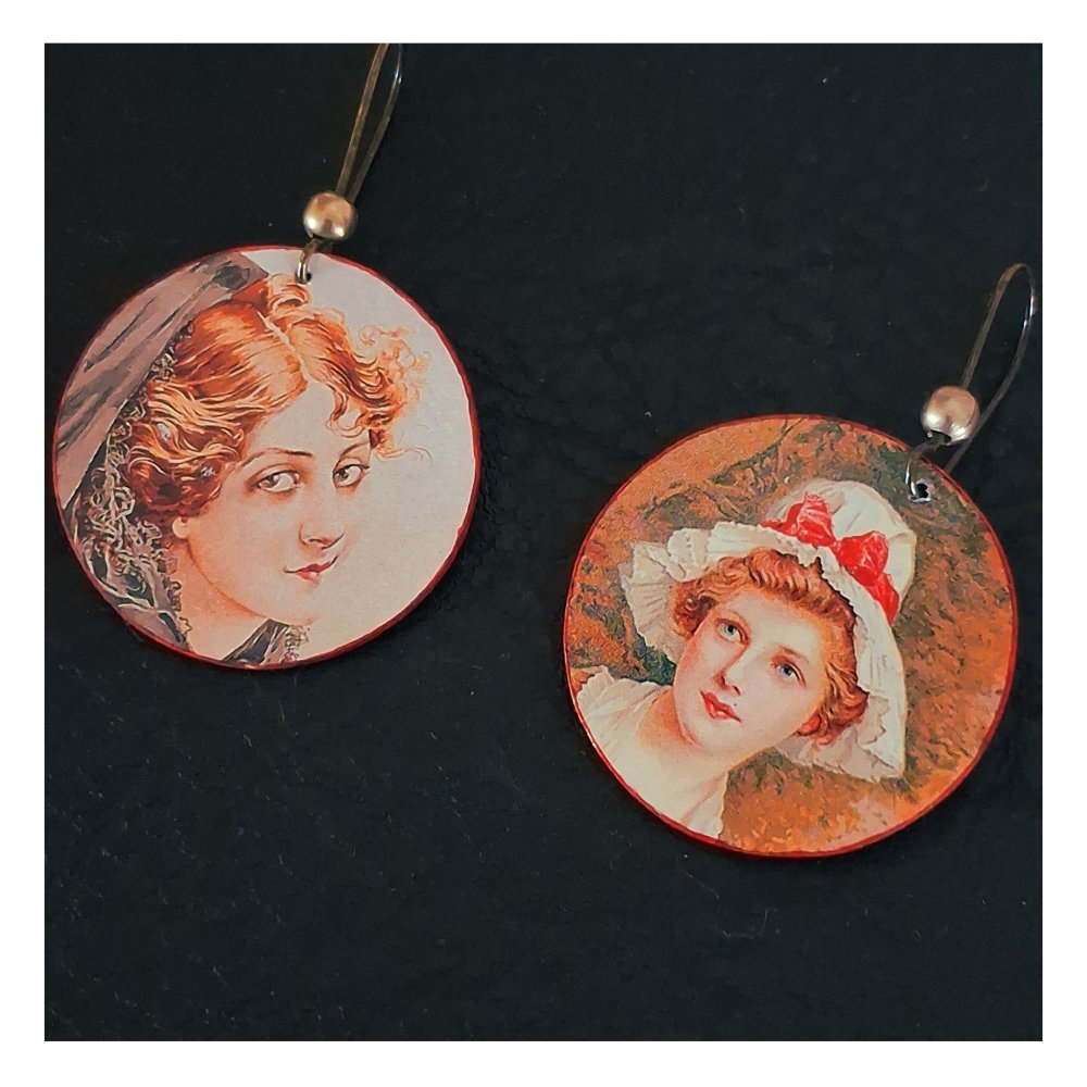 Boucles d'oreilles dépareillées visage d'antan - style rétro & vintage