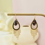 Ces boucles d'oreilles uniques sont une fusion délicate de modernité et de poésie. Elles se composent d'une monture en acier inoxydable doré, d'un pendentif en papier japonais Washi à motif "nuit étoilée" et de fines chaînes dorées qui dansent à chaque mouvement. Parfaites pour celles qui aiment les bijoux originaux et pleins de caractère.