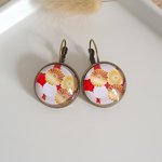 Boucles d'oreilles dormeuse métal bronze cabochon verre fleur de pommier Ajout au panier