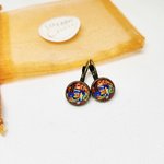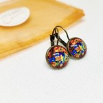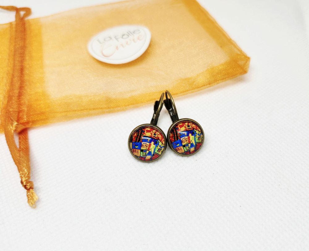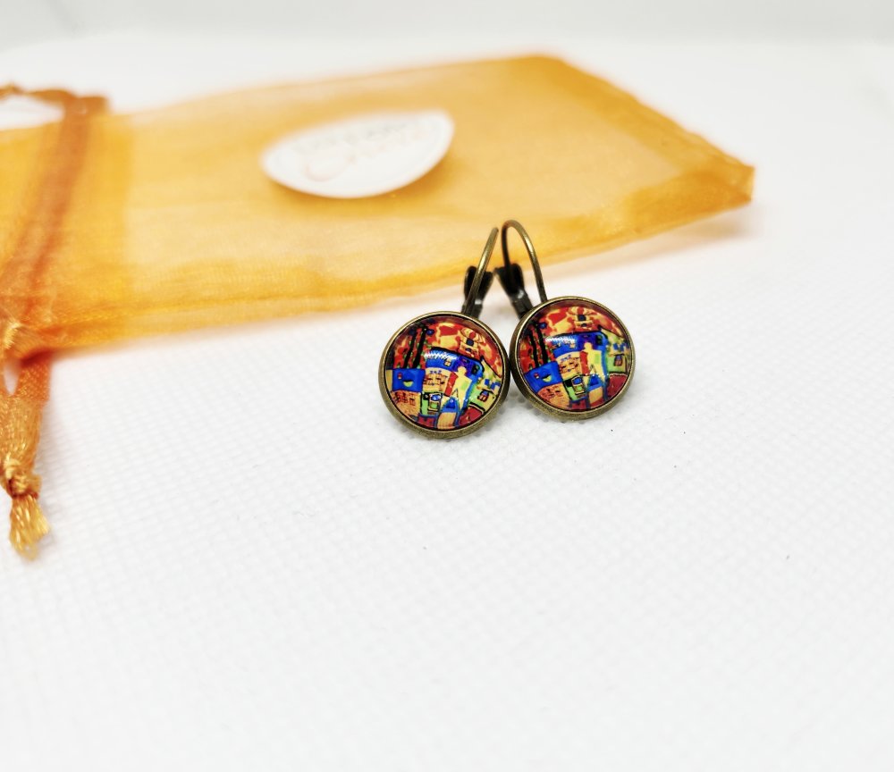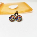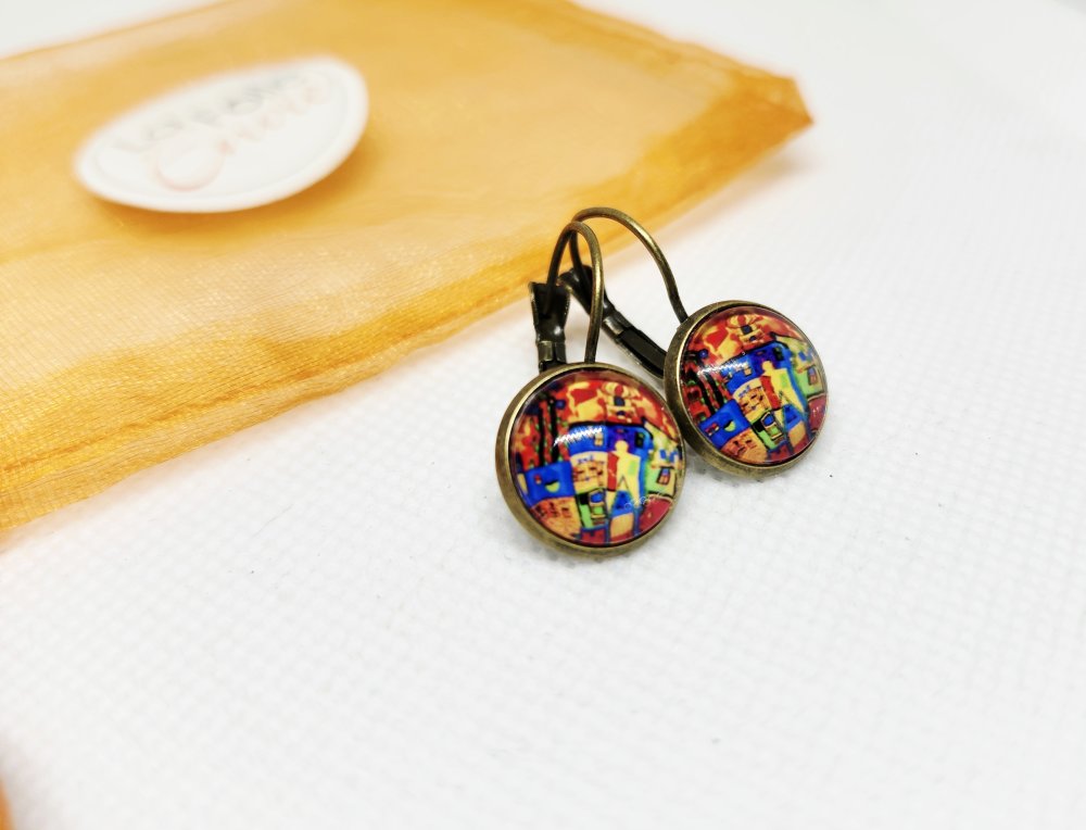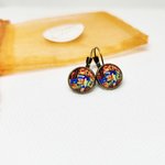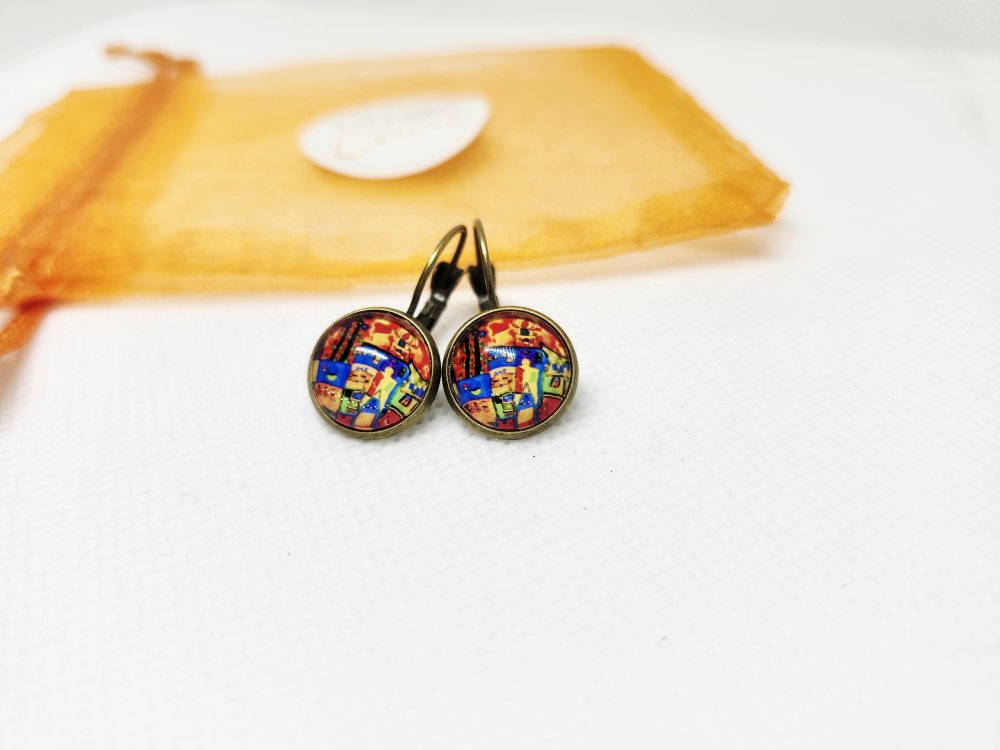 Boucles d'oreilles dormeuses cabochon verre esprit motif abstrait coloré