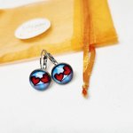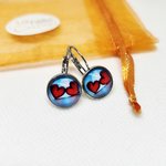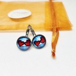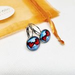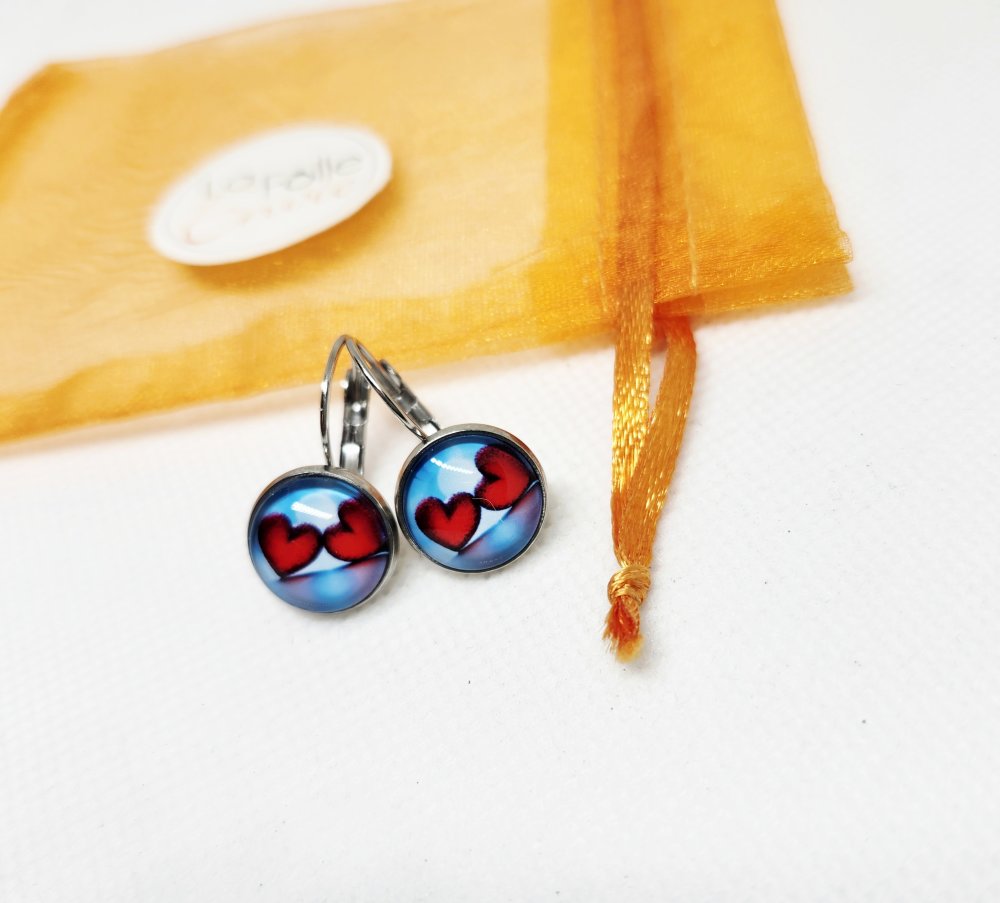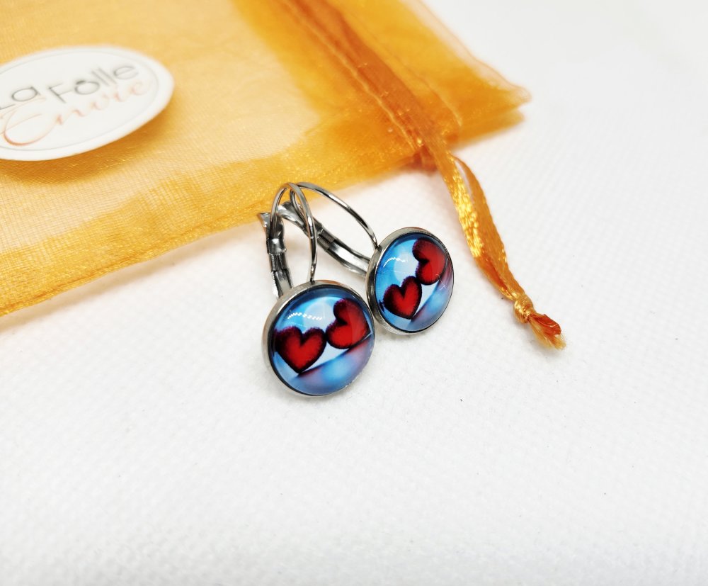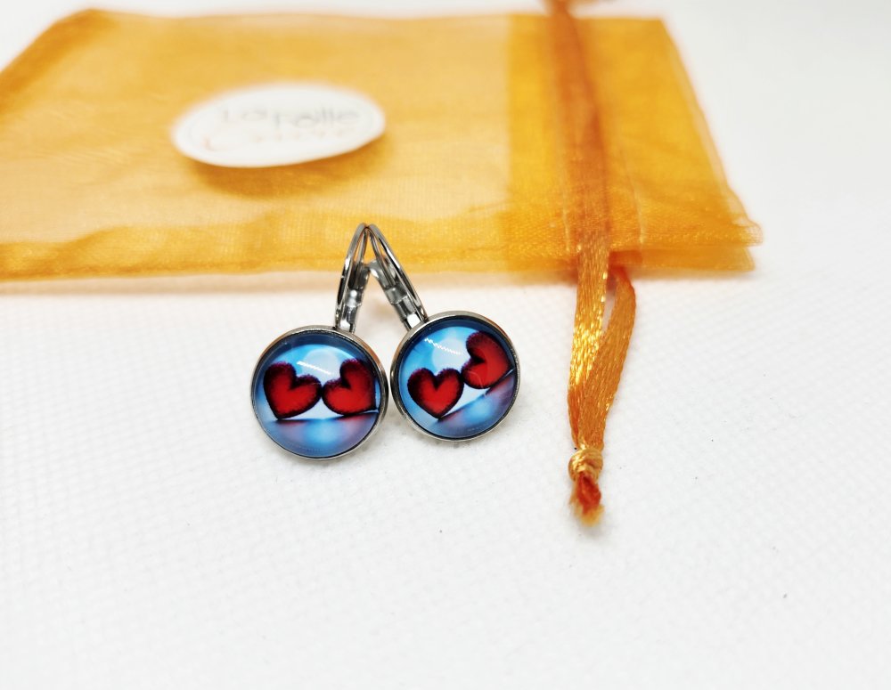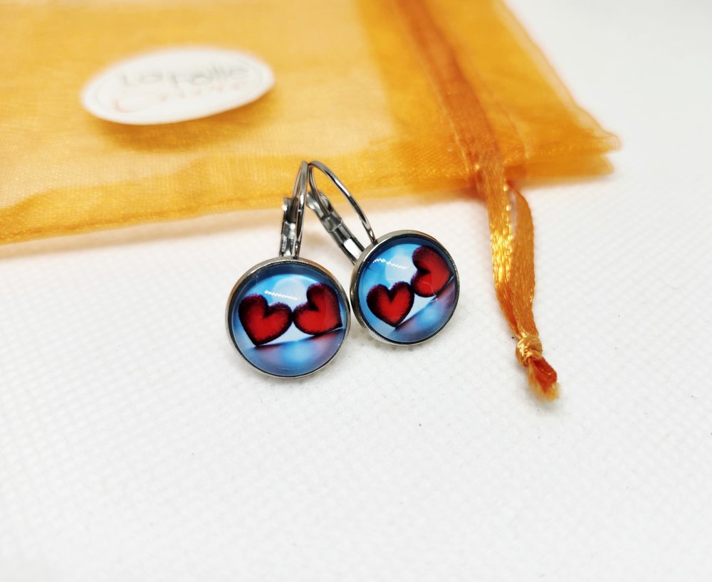 Boucles d'oreilles dormeuses cabochon verre motif double cœurs rouges