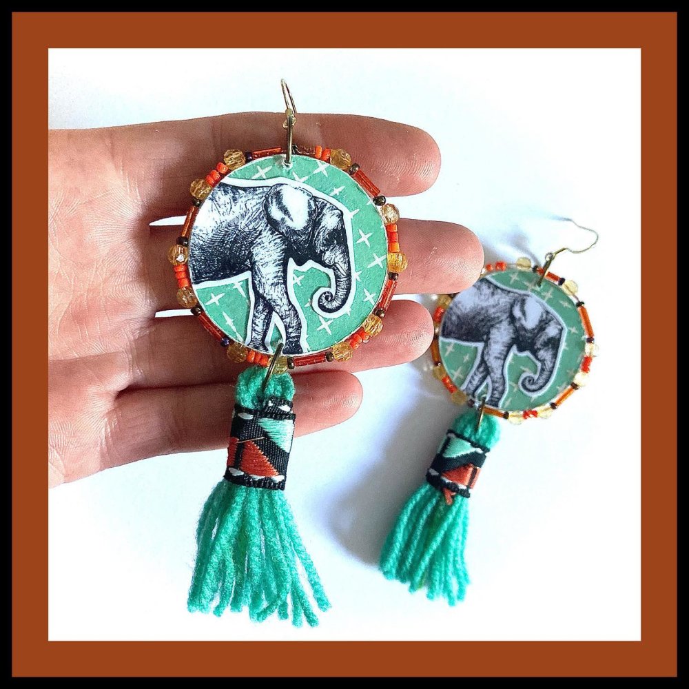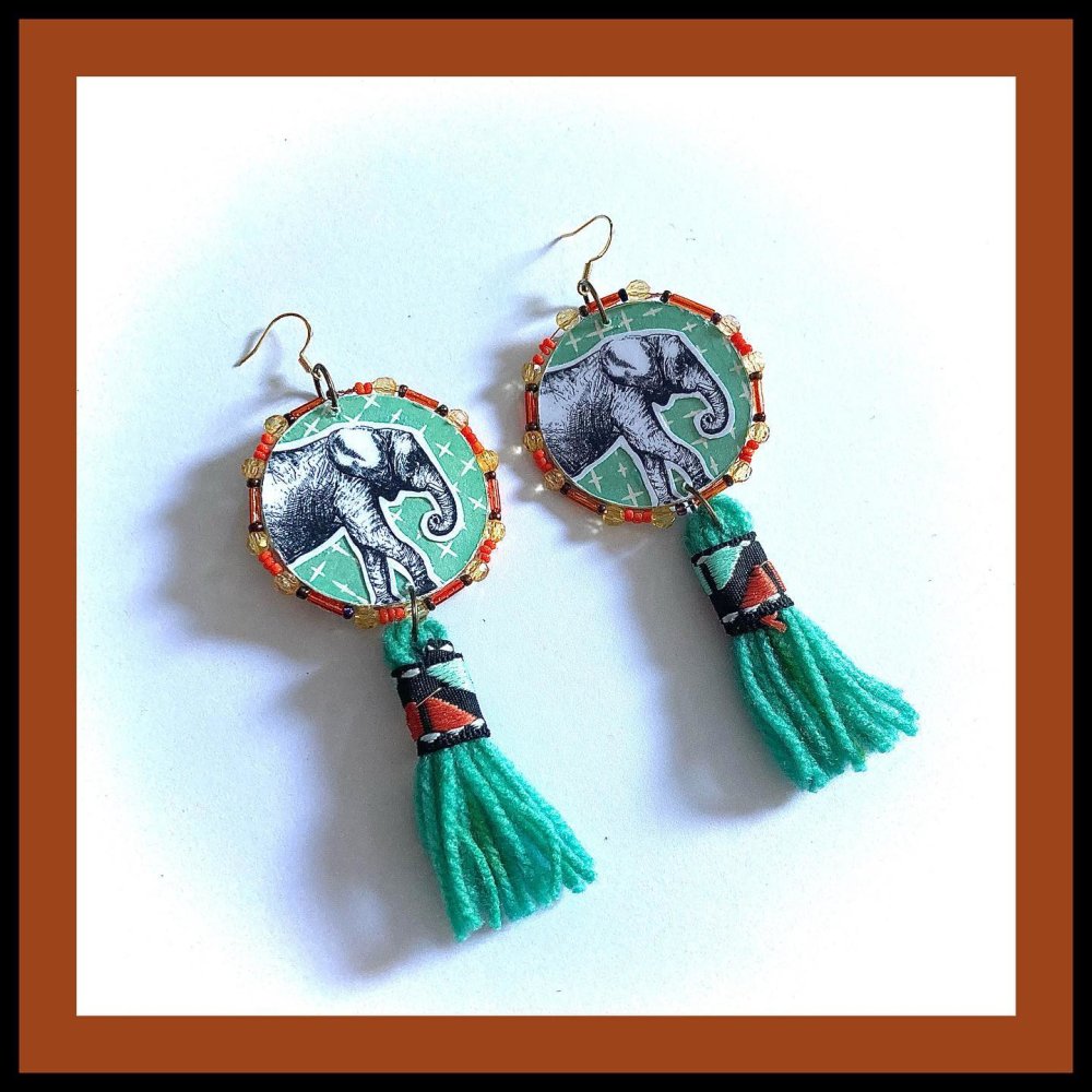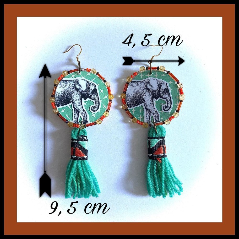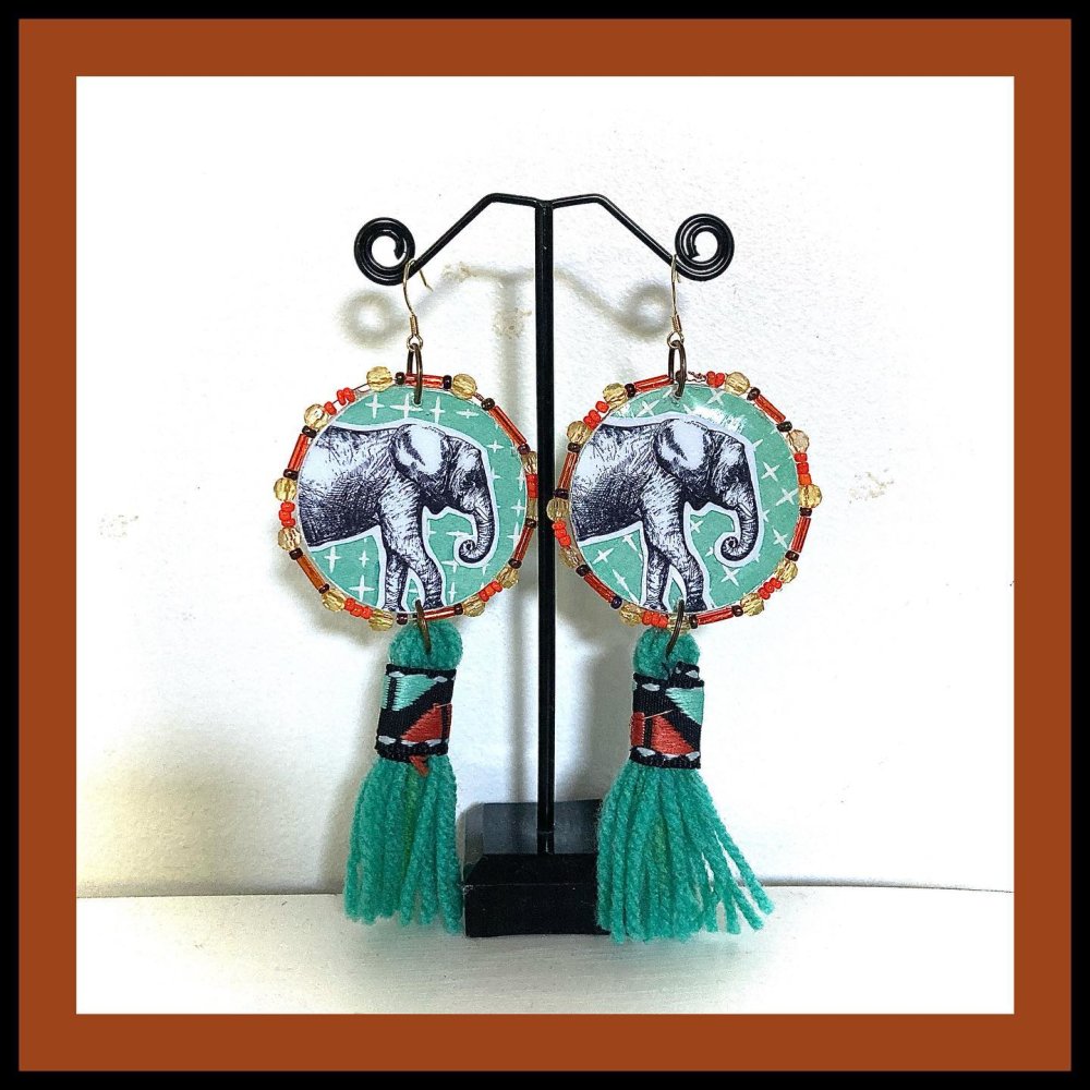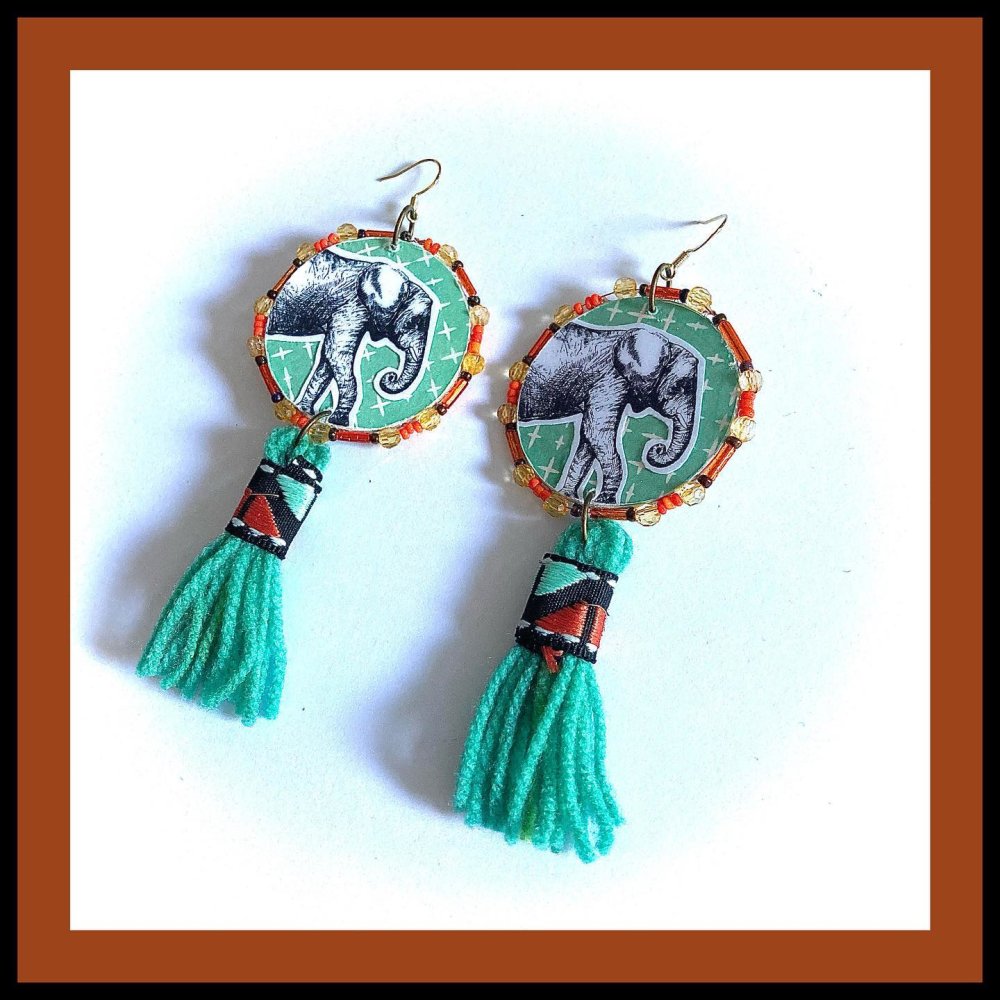 BOUCLES D'OREILLES ELEPHANTS A POMPONS