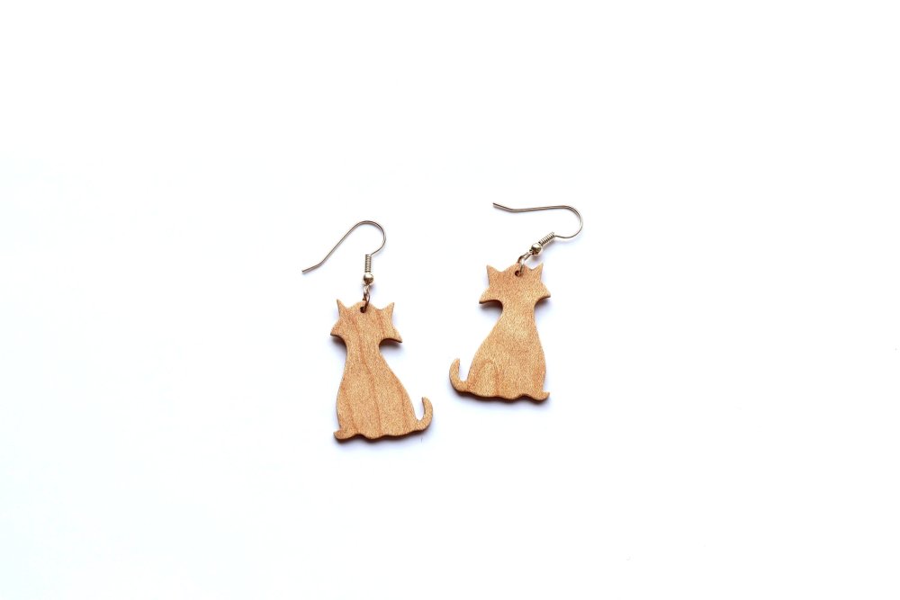 Paire de boucles d'oreilles en bois - CHAT
