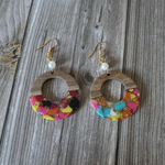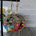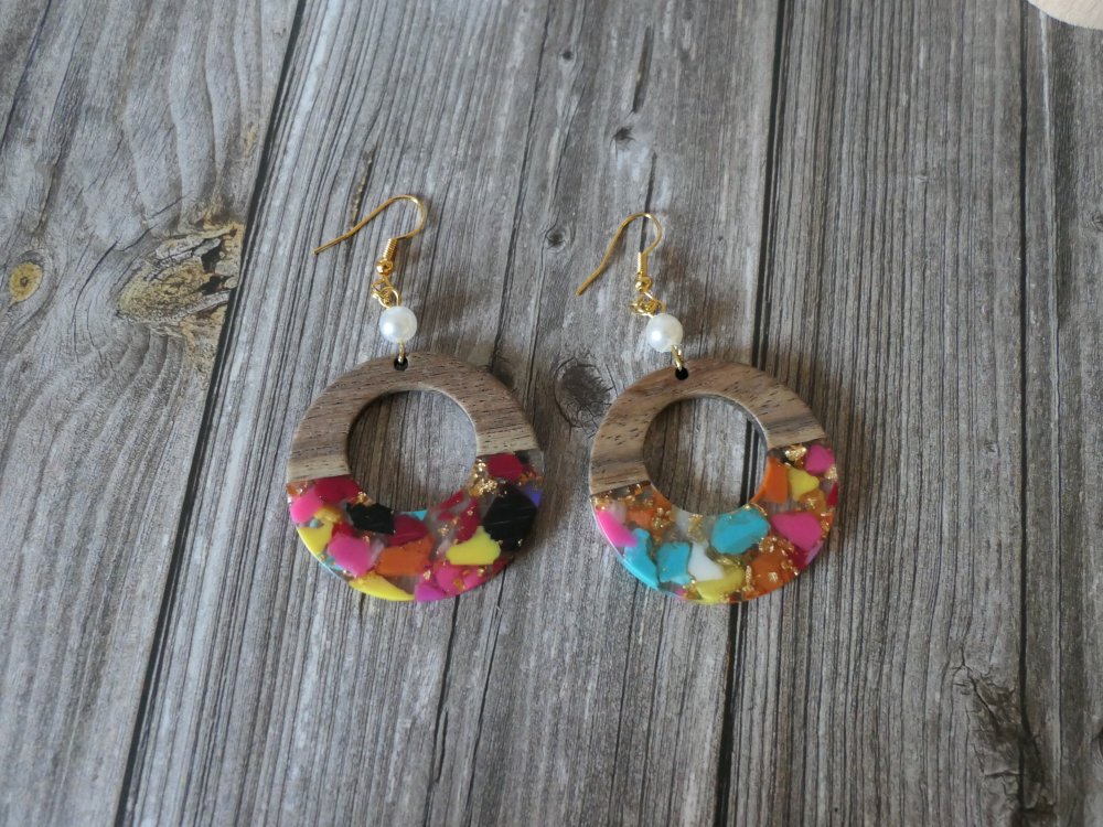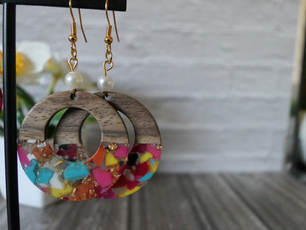 Boucles d’oreilles artisanales en bois & résine – Design coloré et naturel