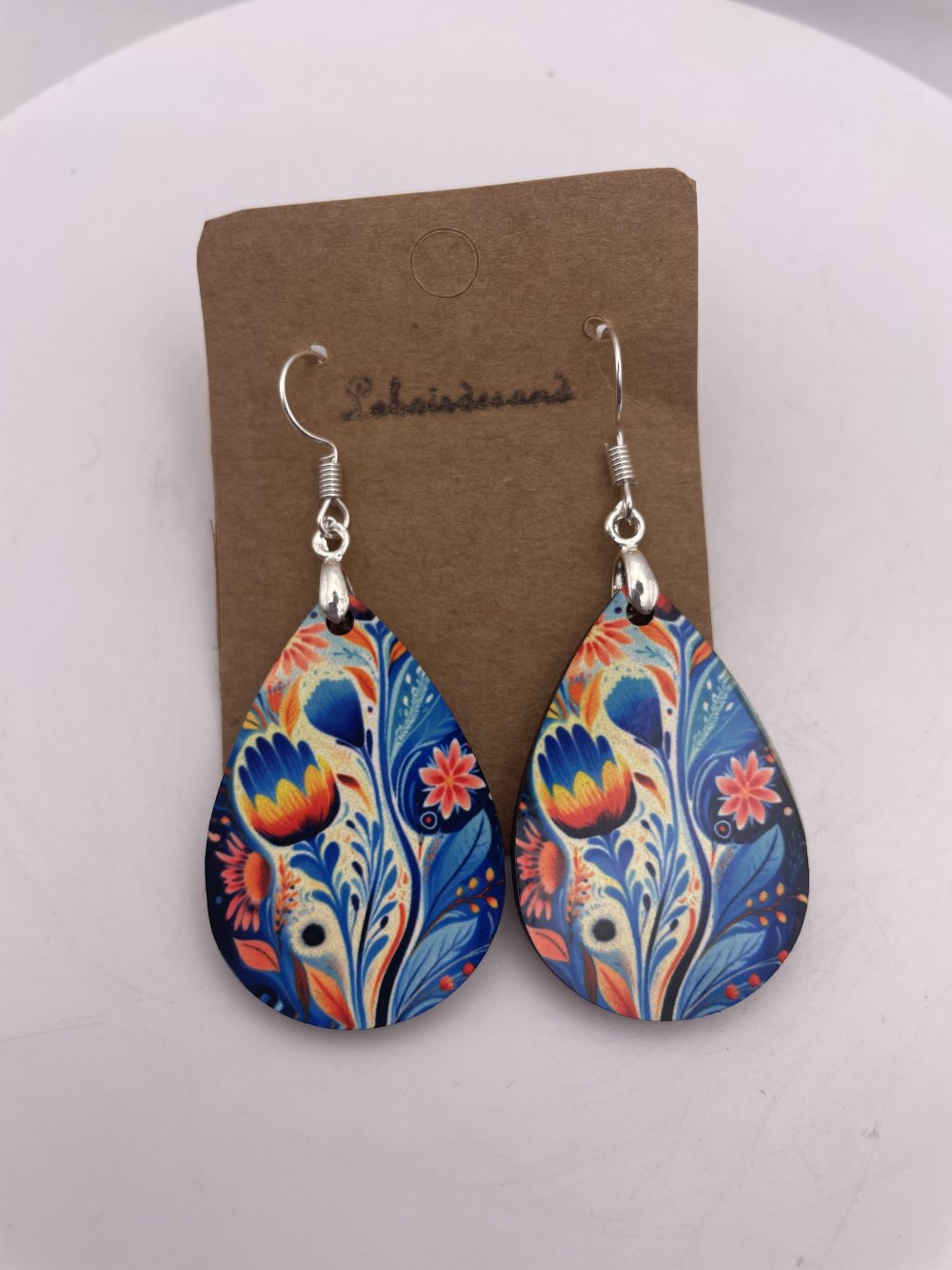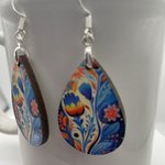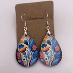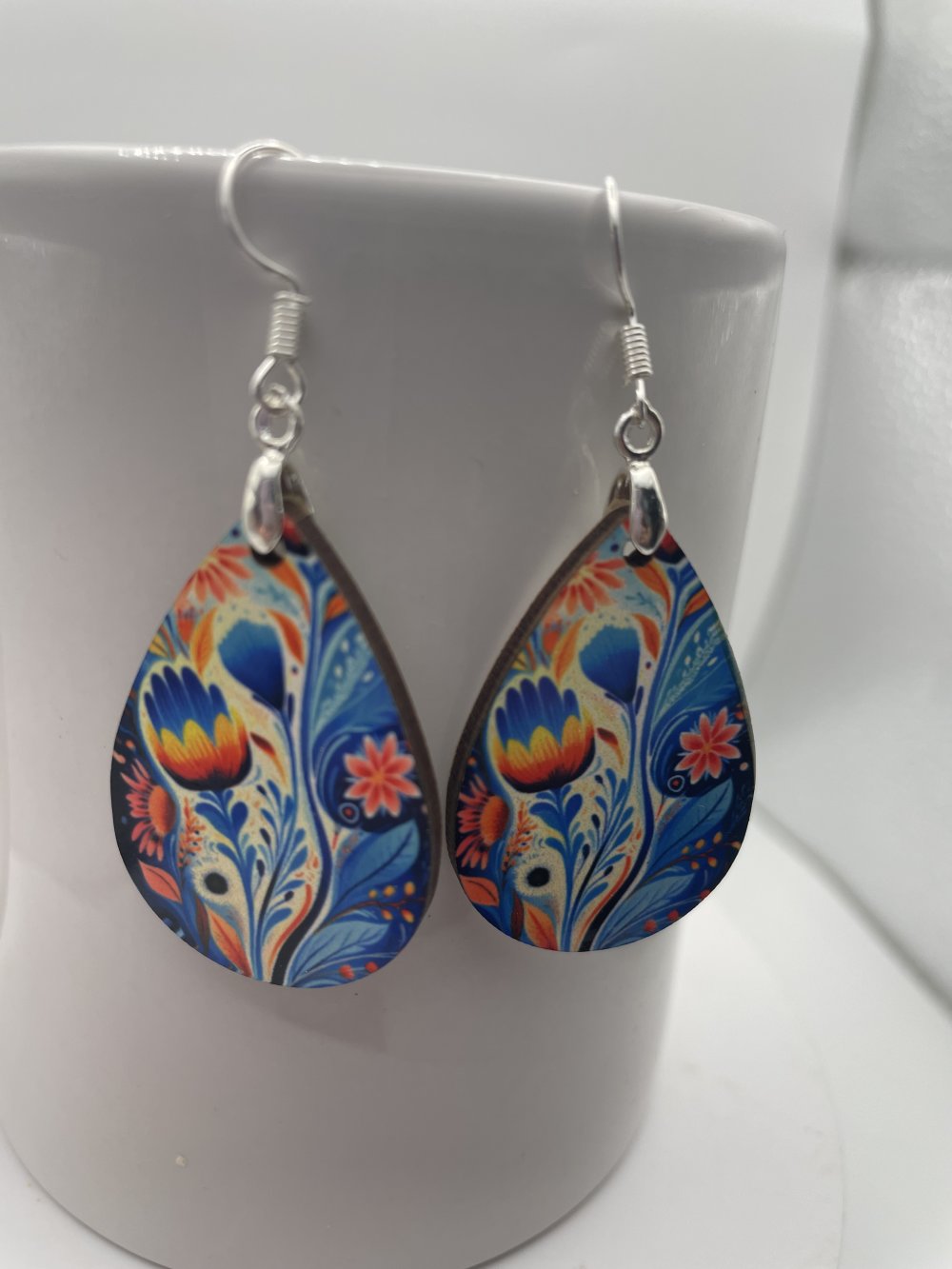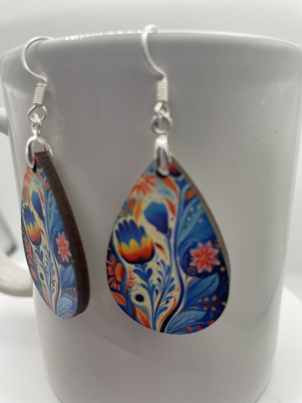 Boucles d’oreilles en bois , impression par sublimation, forme gouttes pendantes , fleurs boho