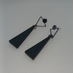 Boucles d'oreilles sur support gunmetal, avec grands triangles en bois noircis