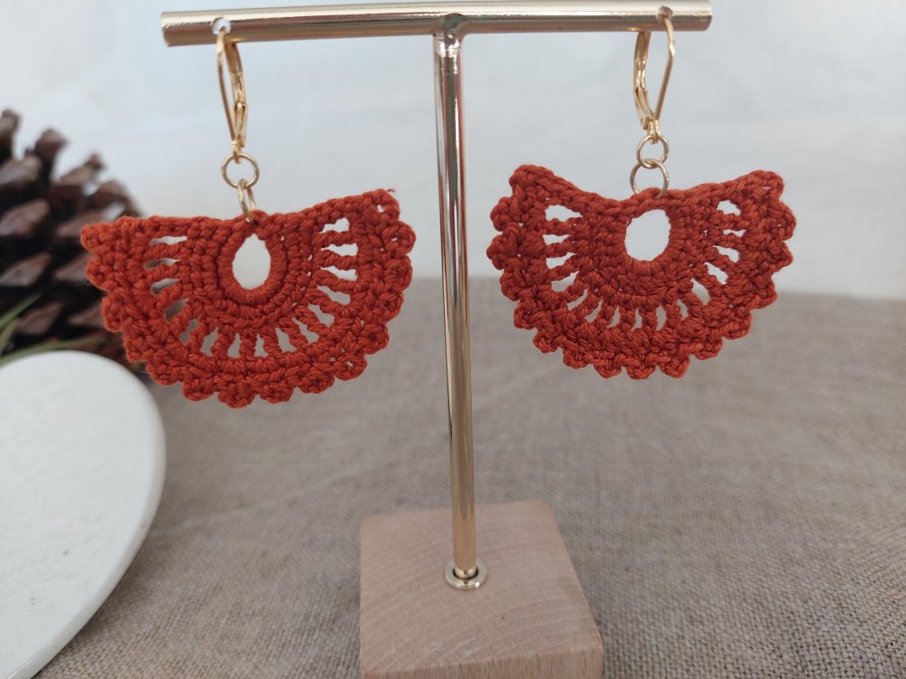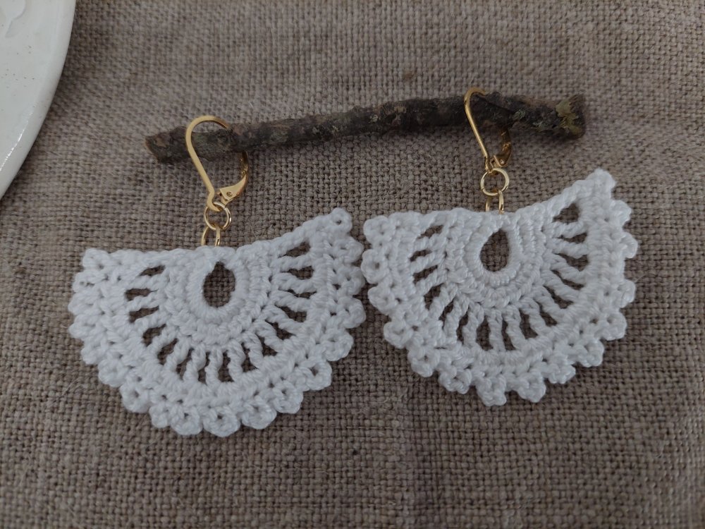 Boucles d'oreilles en coton réalisées à la main en crochet.