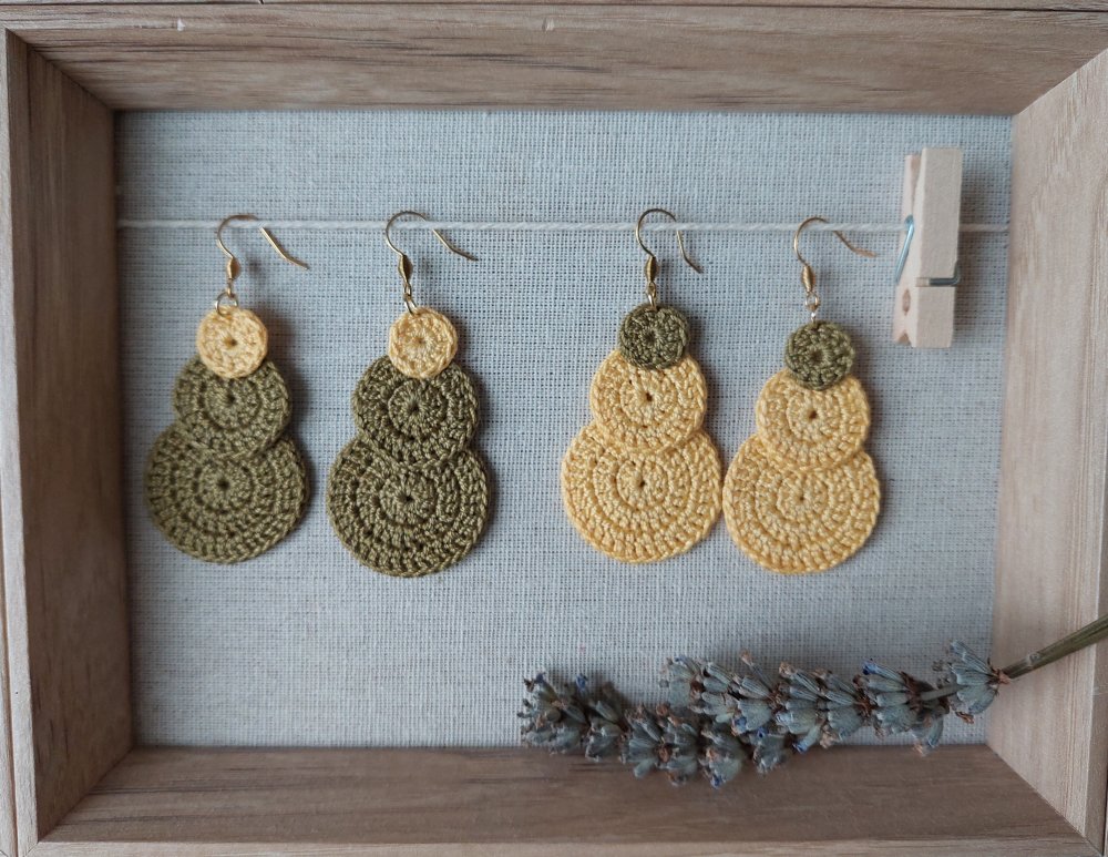 Boucles d'oreilles en coton réalisées à la main en crochet.