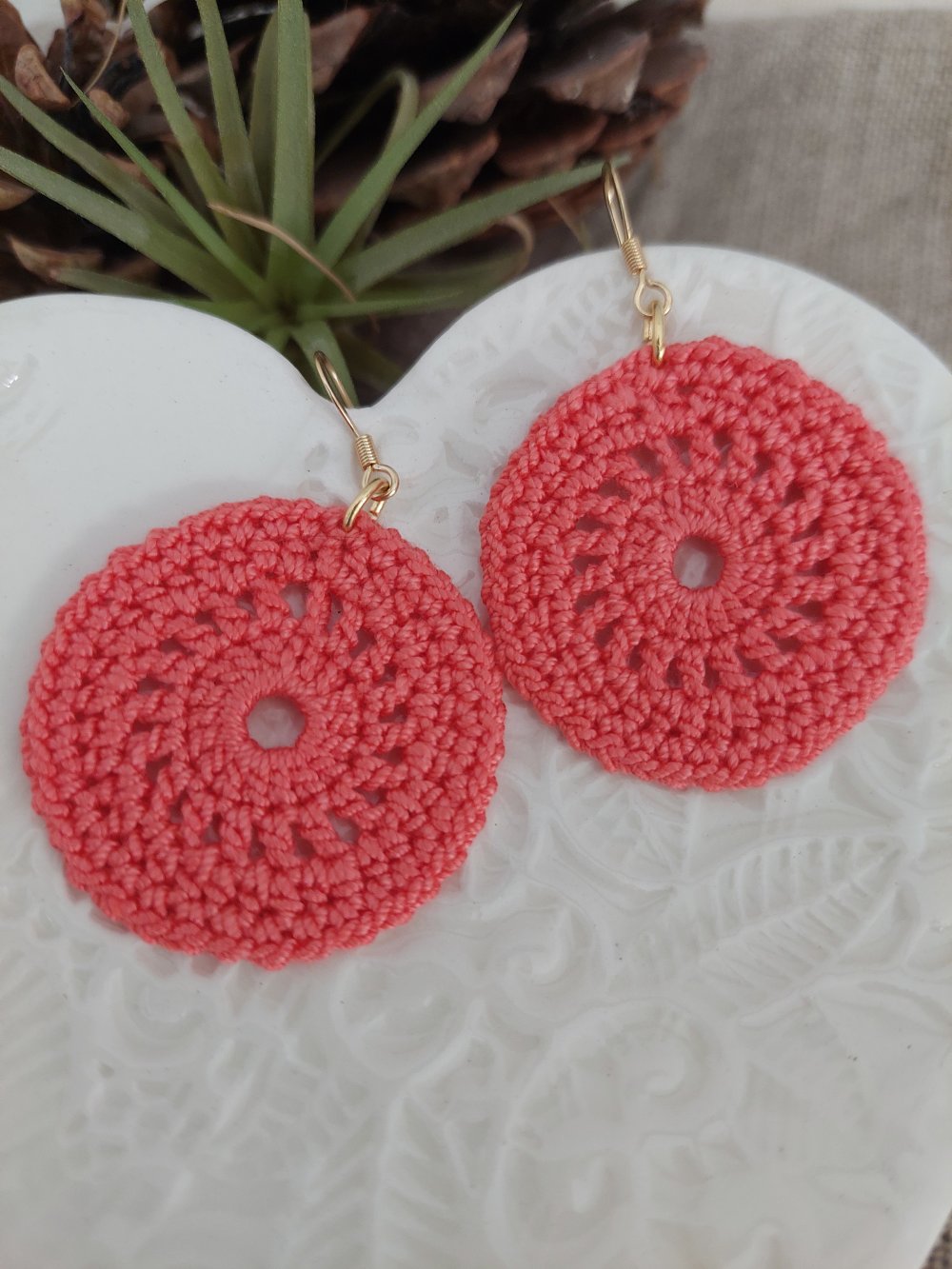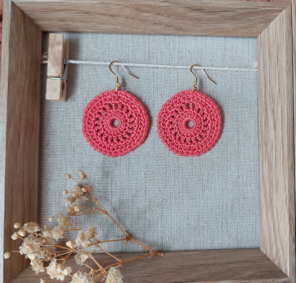Boucles d'oreilles en coton réalisées à la main en crochet.