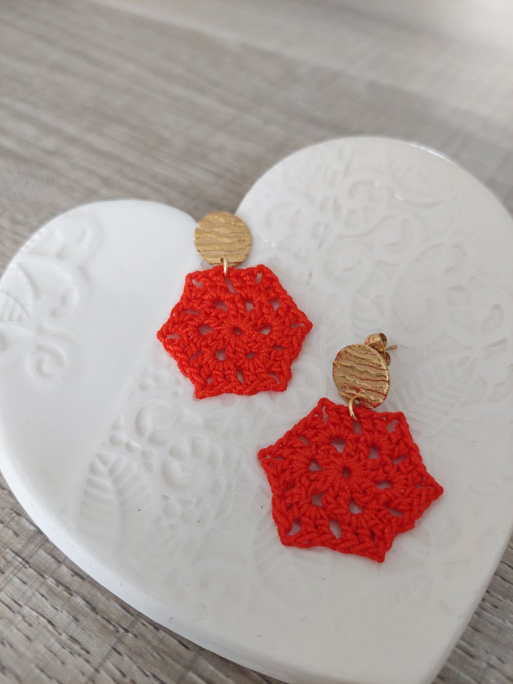 Boucles d'oreilles en coton réalisées à la main en crochet.