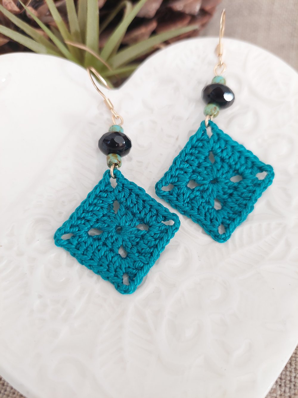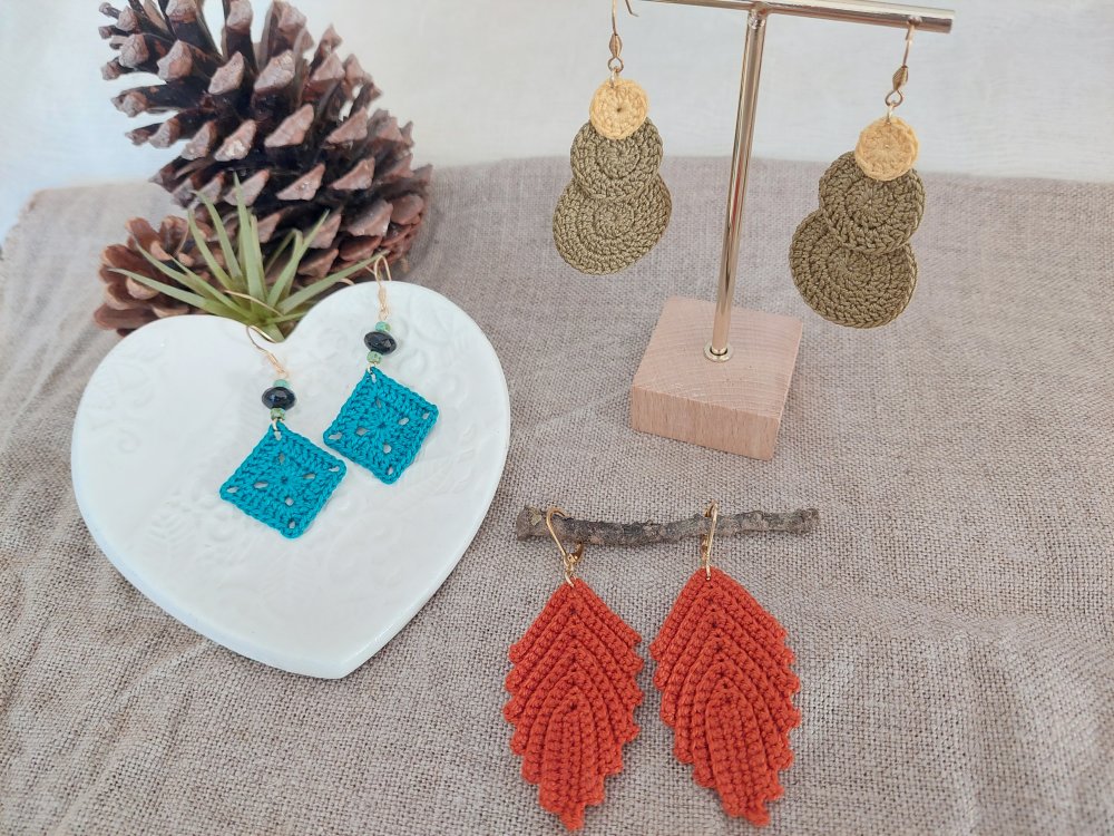 Boucles d'oreilles en coton réalisées à la main en crochet.