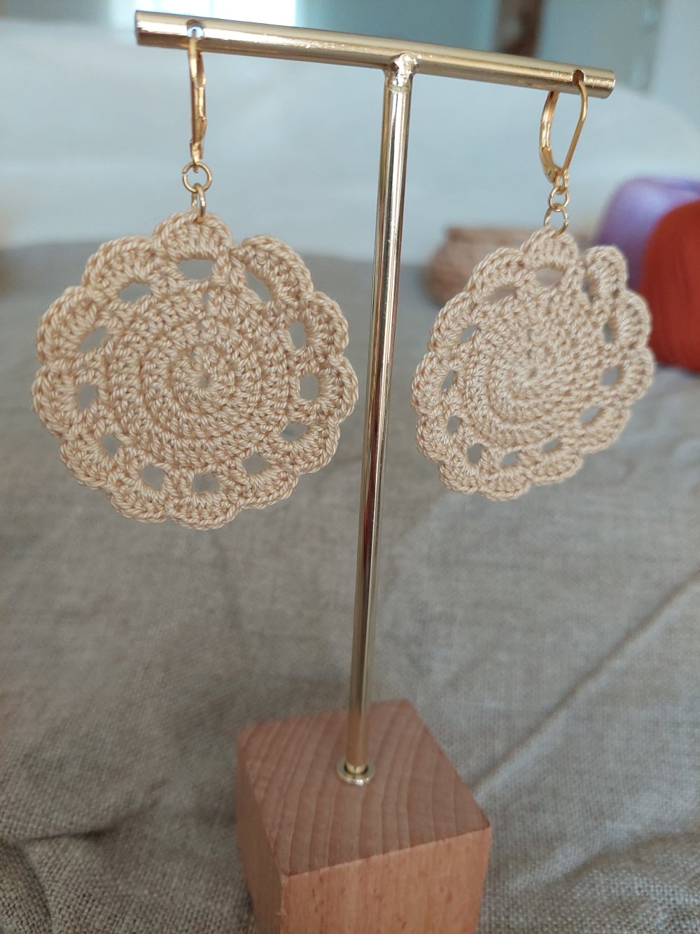 Boucles d'oreilles en coton réalisées à la main en crochet.