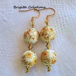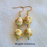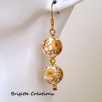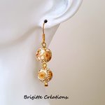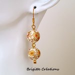 Chaque boucle est composée de deux perles japonaises TENSHA rondes séparées par une perle toupie en cristal swarovski "cristal aurum" de 4mm de diamètre et posées sur une petite perle toupie en cristal swarovski de 3 mm coloris "cristal aurum"