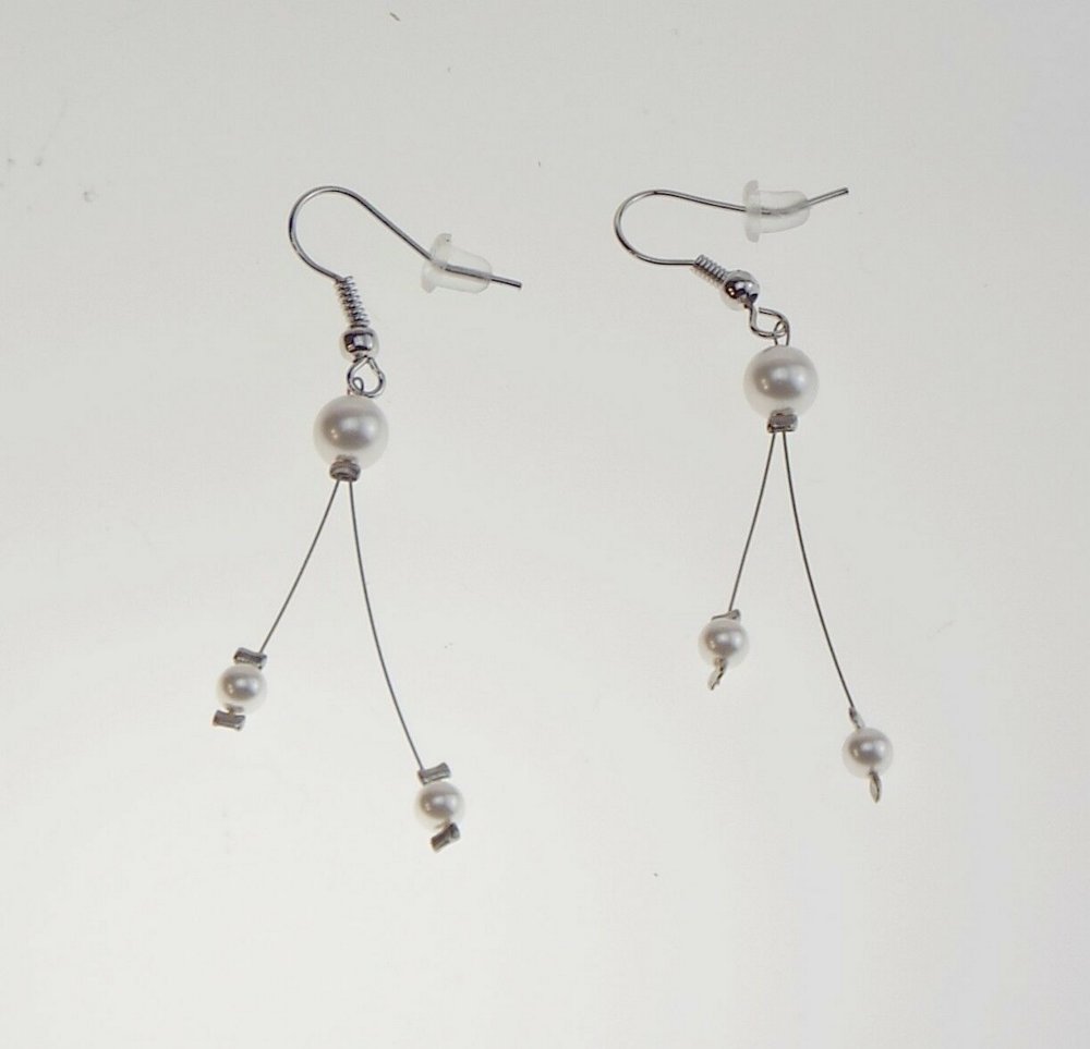 Composé de rondes nacrées de swarovski 4 et 6 mm, hauteur hors boucles: 4.5 cm.