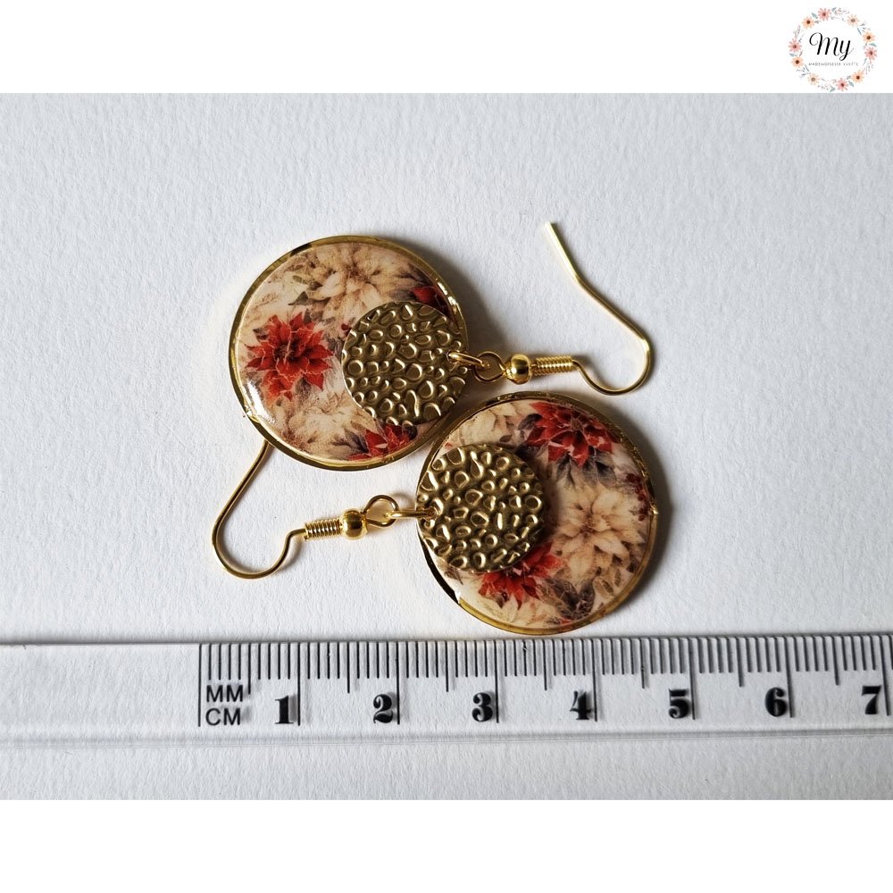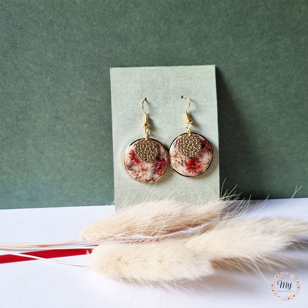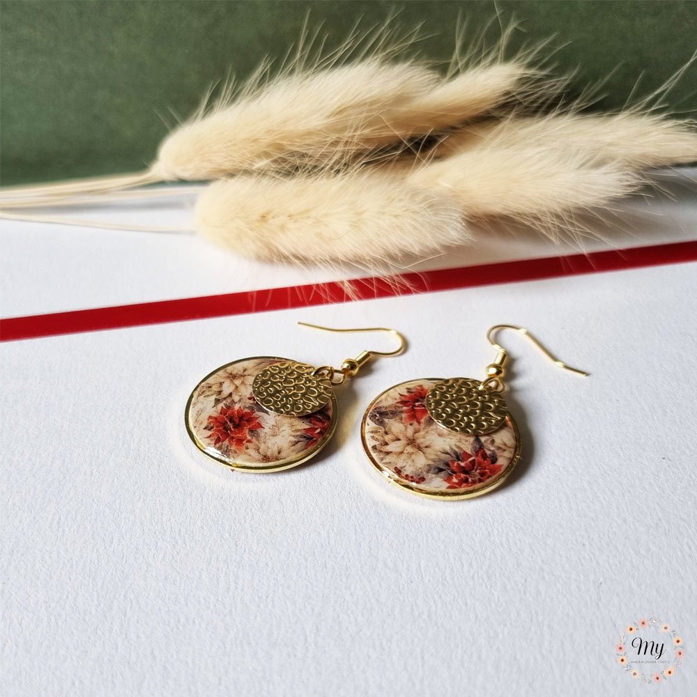 Découvrez les boucles d'oreilles "poinsettias", fabriquées à la main dans mon atelier du sud ouest de la France.