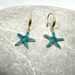 Boucles d’oreilles attaches dormeuses dorées en acier inoxydable, avec étoile des mers émaillé turquoise.