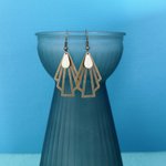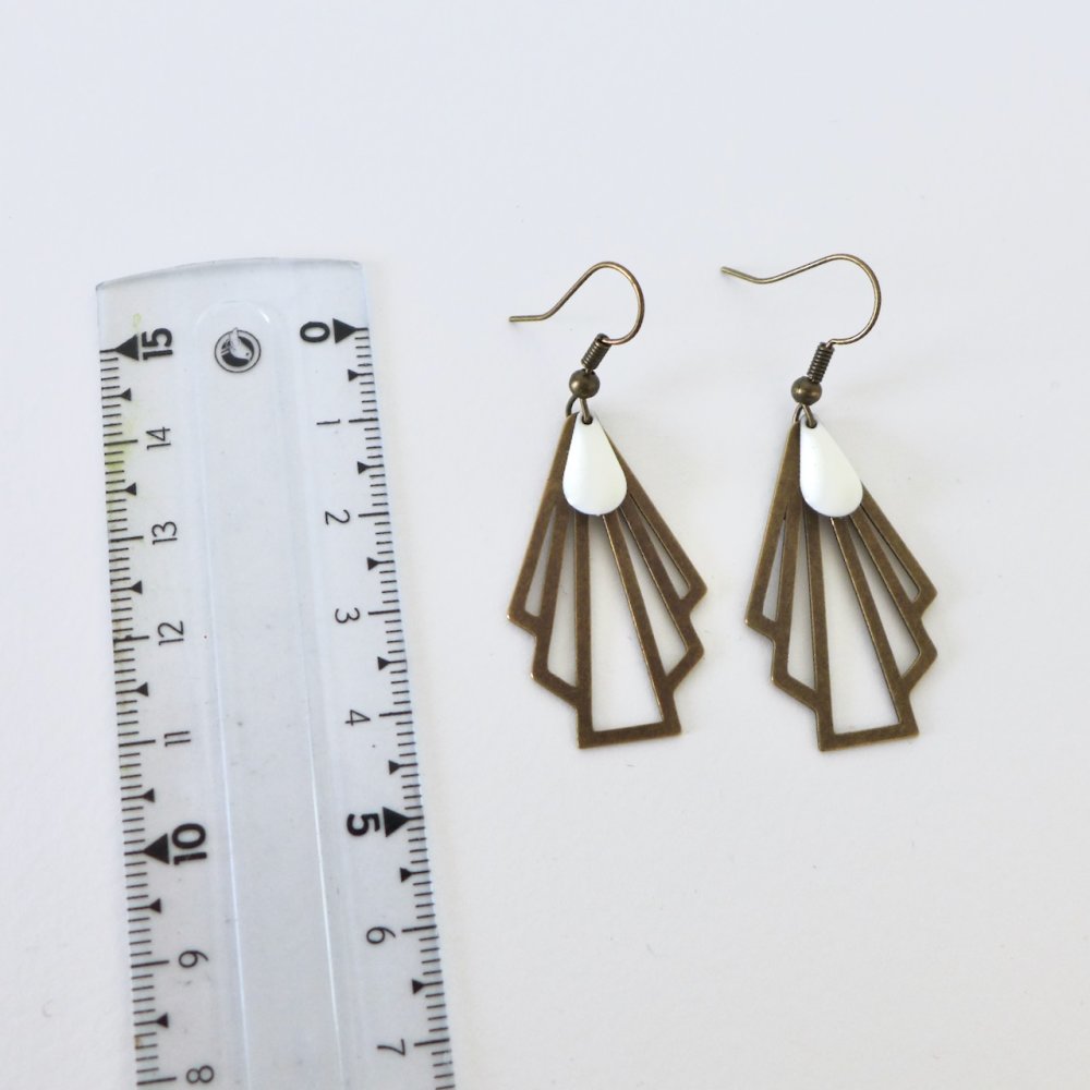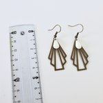 Boucles d'oreilles éventail géométrique bronze et blanc