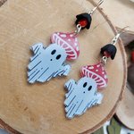 Un duo aussi mignon qu’étrange : de petits fantômes malicieux se sont cachés sous des chapeaux de champignons rouges à pois blancs !