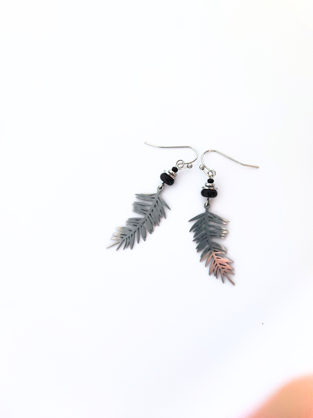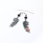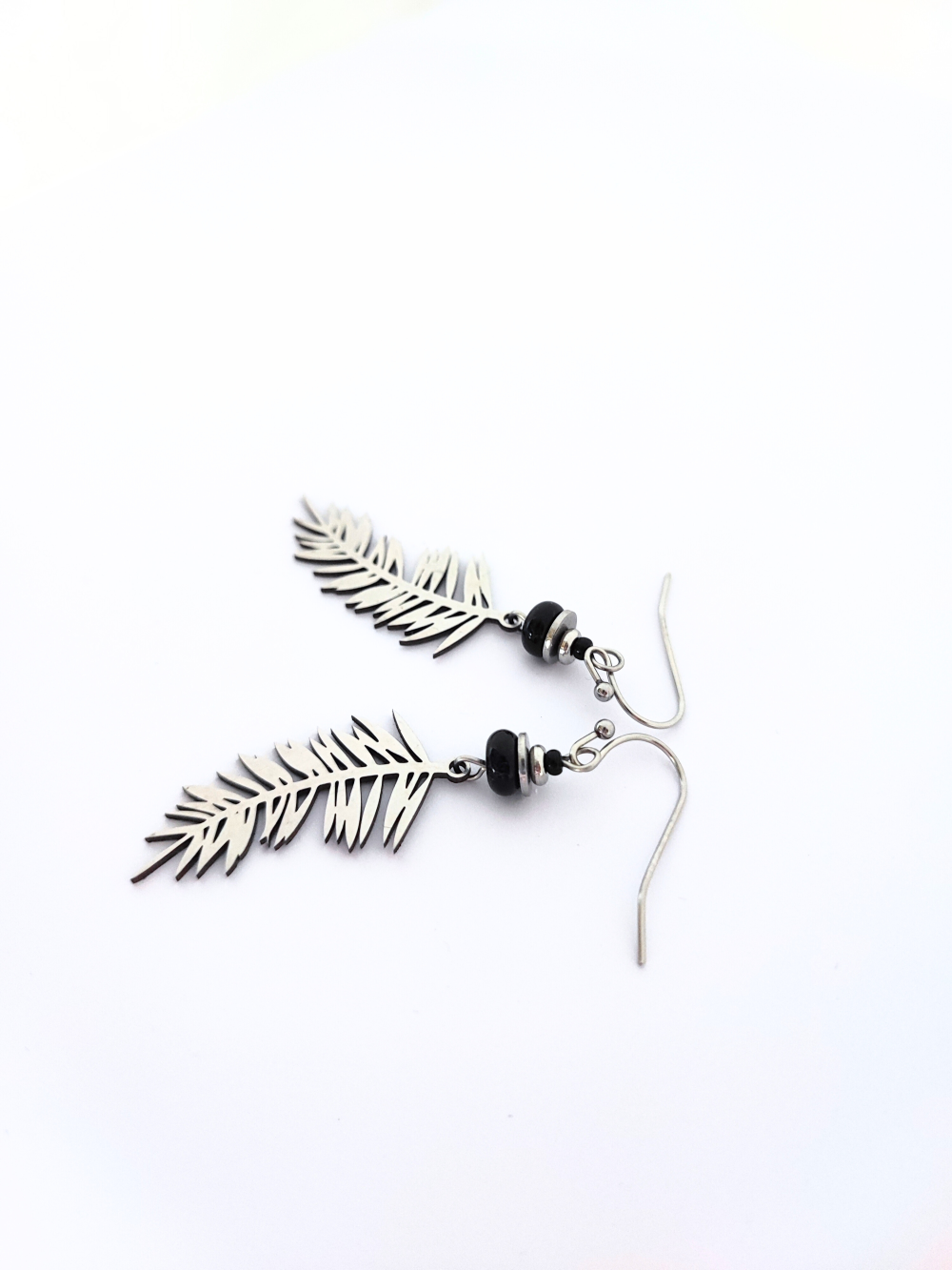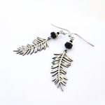 Boucles d'oreilles feuilles et perles noires, idée cadeau femme