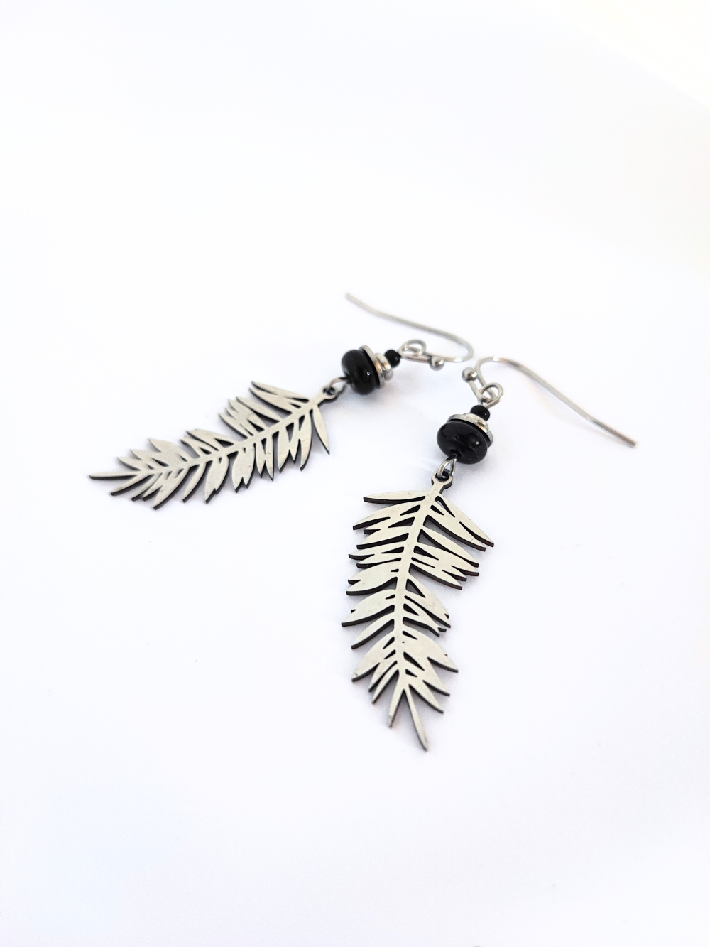 Boucles d’oreilles en acier inoxydable & Perles noires