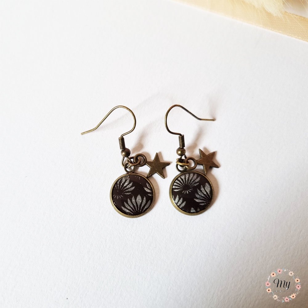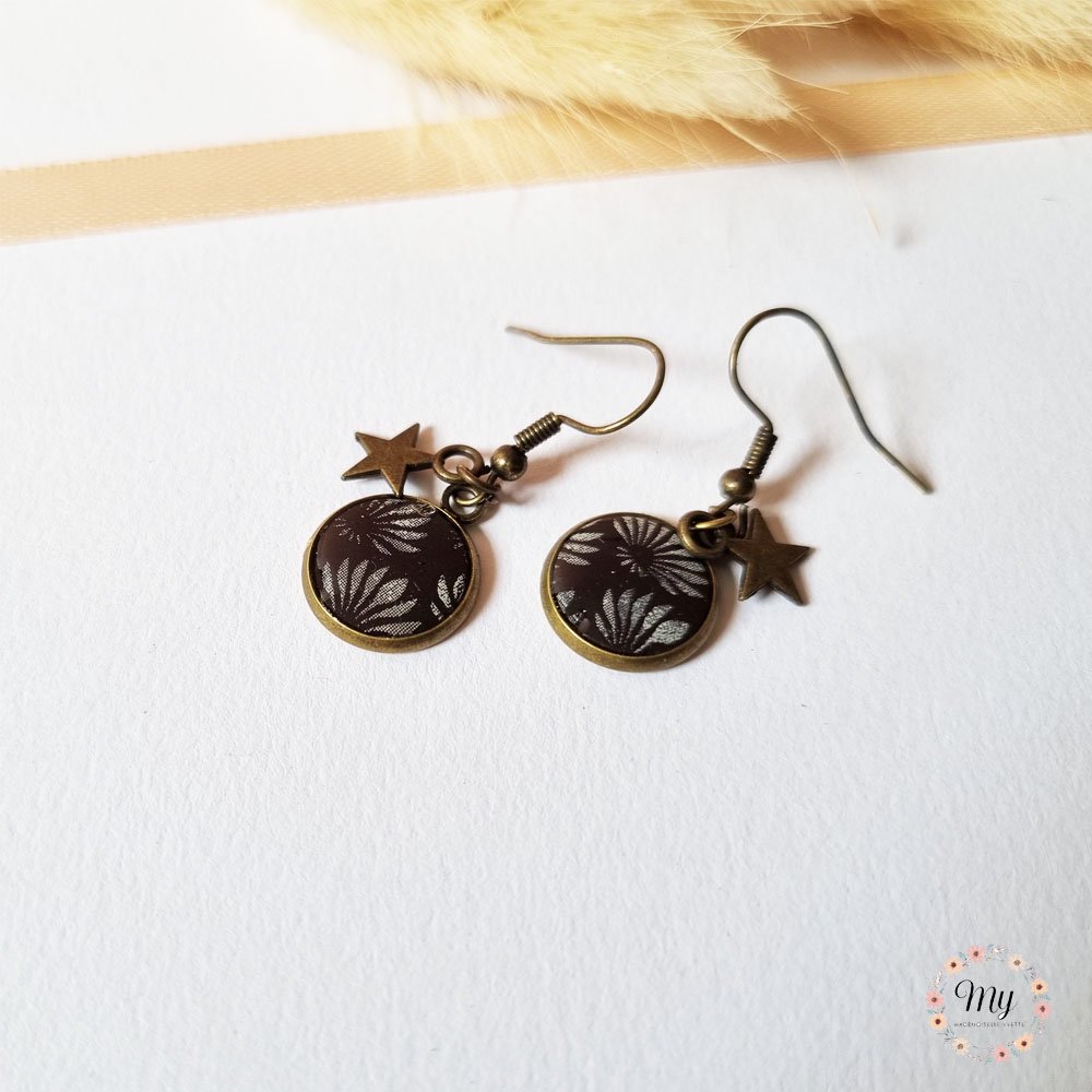 Boucles d'oreilles pendantes "fleurs d'automne" -marron foncé