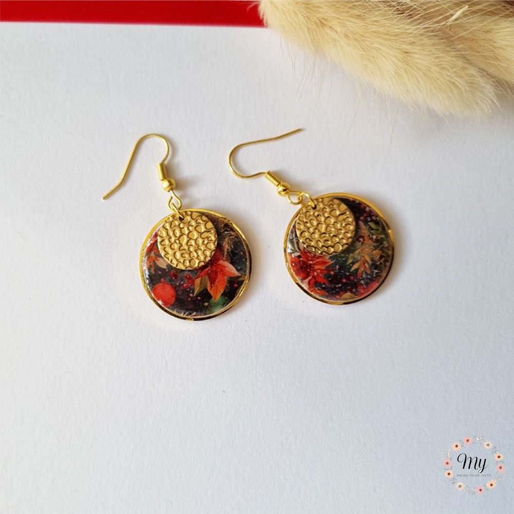 Découvrez les boucles d'oreilles "fleurs de noël", fabriquées à la main dans mon atelier du sud ouest de la France.