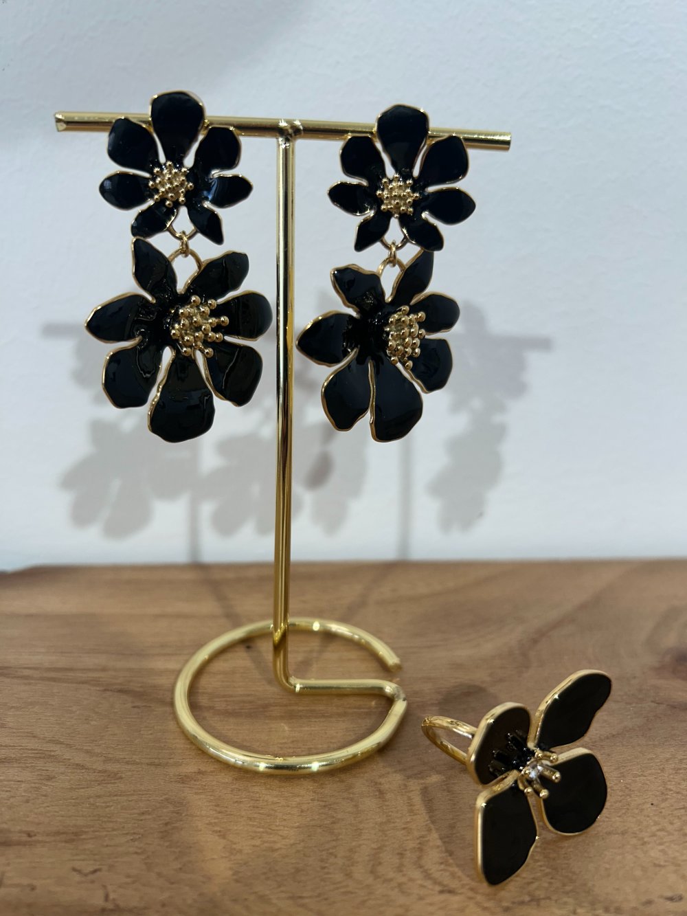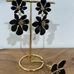 Boucles d’oreilles fleurs émaillées noires, acier inoxydable, tendance