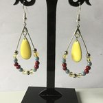 Le haut des boucles est orné d'un sequin émaillé jaune pâle forme goutte.