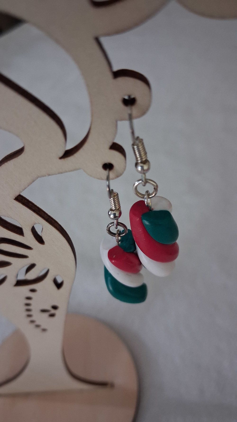 Boucles d'oreilles guimauve en fimo vert, rouge et blanche